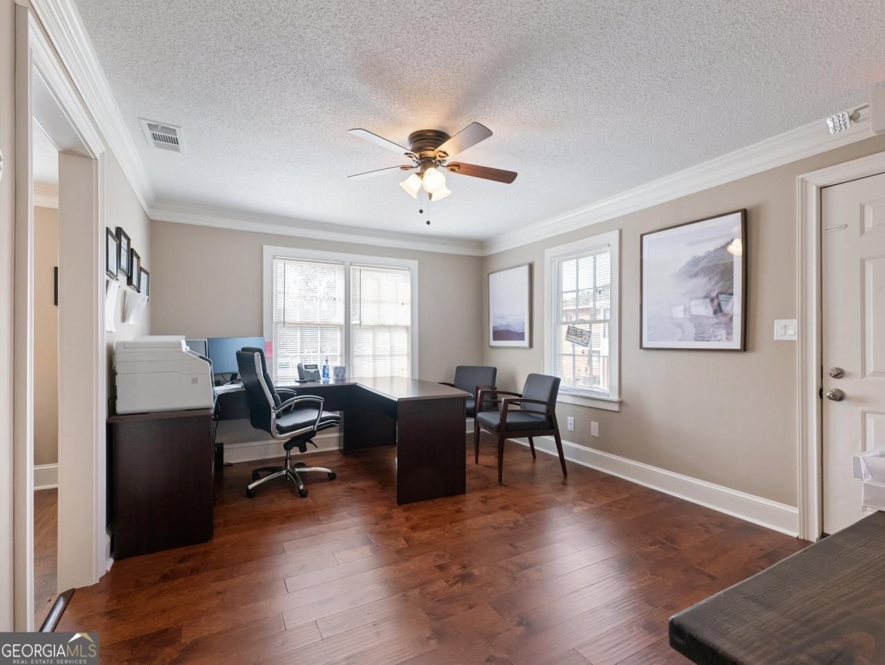 Commercial Office Space in Downtown Buford, just one street south of Main Street. Located Behind the Buford Grill and steps away from Rico's World Kitchen; catty Conner to Main Street Blooms. Free standing multi-unit building with its own parking lot. Building consist of 4 units, each unit has independent entrances, electric meter and HVAC. The downstairs units A & D have been combined and used as a single unit, but could easily be closed/converted and used as two separate units. Two units are leased; Unit C is leased to Used Auto Broker, Unit B is leased to a Renovations Company. City of Buford has approved the construction of a side walk on West Moreno Street. Please consult with the City of Buford for more details on this project. Lots going on in this street, Moreno Street has a new 256 space parking deck, Meander Brewing on West Moreno -soon to open will be a great hangout spot, additionally on Moreno Street is Tchin Tchin Coffee.