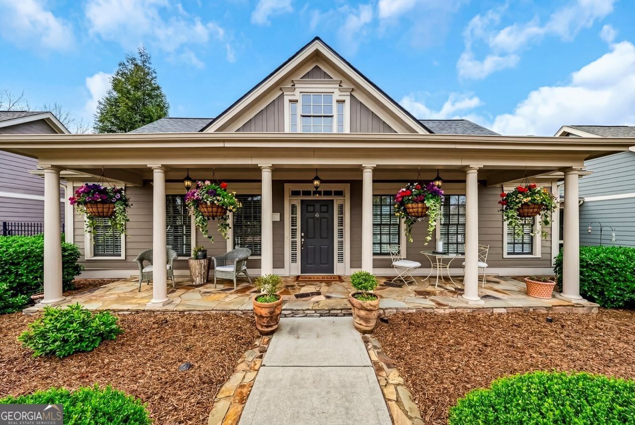 Rare opportunity in the Windsong-built, gated active adult community of Somerset at Towne Lake. This meticulously maintained, move-in-ready home offers a desirable open-concept floor plan ideal for everyday living and entertaining. The kitchen features a large center island with seating, granite countertops, abundant cabinetry, a spacious walk-in pantry, and a full suite of appliances. A separate dining room is perfect for hosting gatherings, while the family room with fireplace overlooks a private courtyard complete with stone pavers, raised planter beds, and professional landscaping-your own outdoor retreat. The light-filled owner's suite includes separate closets and an ensuite bath with double vanities and a large walk-in glass shower. The main level also offers a guest bedroom, full bath, and a formal living room/flex space that offers versatile use and can easily be converted into a true bedroom with the addition of a closet, or enjoyed as a flexible space for a home office, or additional living area. A convenient laundry room with a sink and storage completes the main level. Upstairs, you'll find a versatile bonus room and additional attic storage. The rear-entry two-car garage provides even more storage. Major updates include a brand-new roof, HVAC approximately 1.5 years old, exterior paint (6 years), and a new refrigerator. HOA-maintained front landscaping allows for low-maintenance living. Somerset offers a clubhouse, fitness center, and active social calendar in a welcoming community setting. A truly exceptional opportunity.