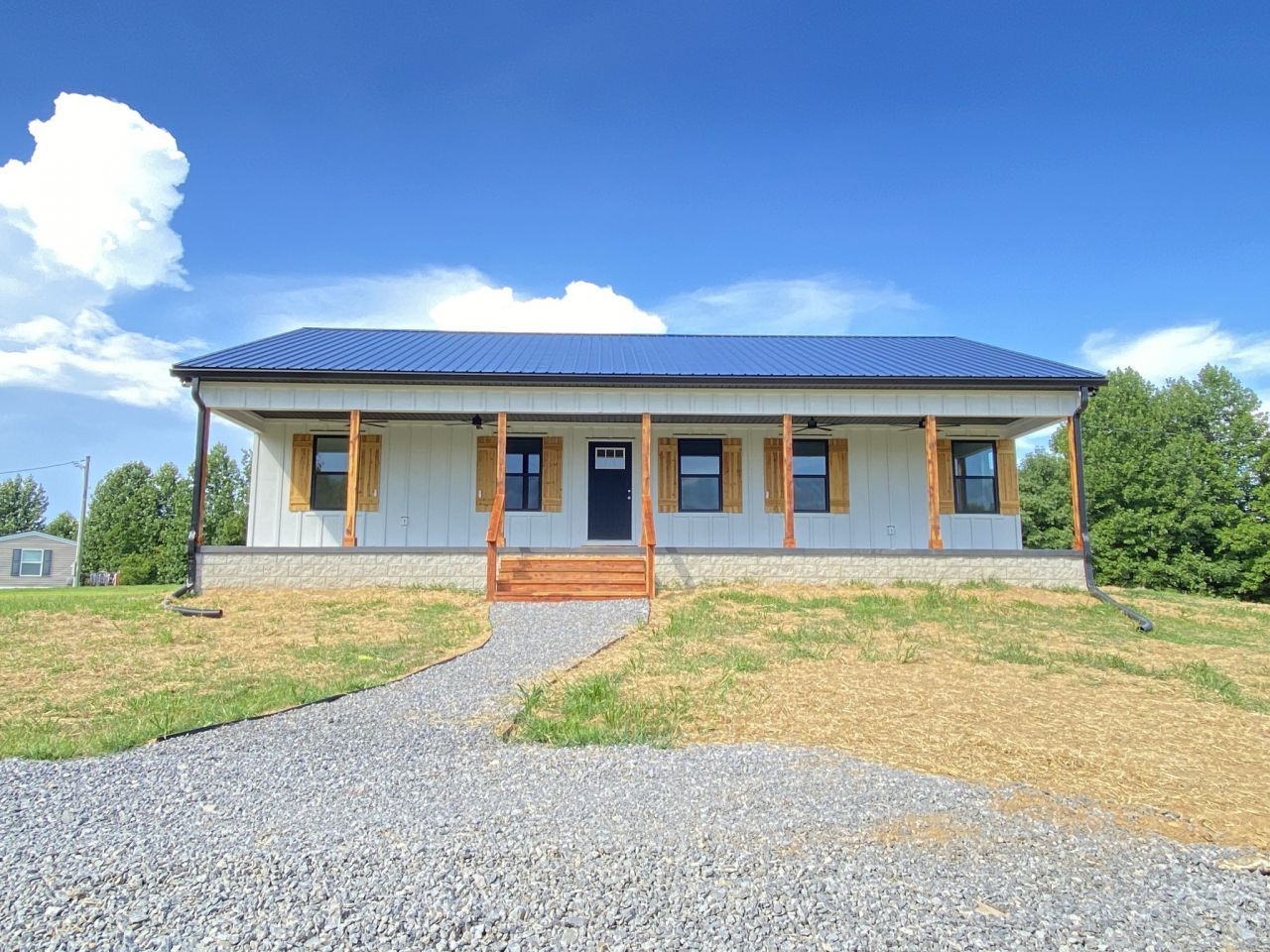 Breathtaking views and thoughtful craftsmanship define this brand-new 3BR/2BA ranch home on a level 1-acre lot in peaceful Chestnut Mound. Perched on the highest point of the property, the home features a full-length 8x50 covered front porch-perfect for taking in sunset views. Inside: white oak floors throughout the living areas, real wood vanities with granite tops in the bathrooms, and a spacious open-concept kitchen with quartz countertops, Whirlpool appliances, garbage disposal sink, tile backsplash, and custom plywood-constructed cabinets. Primary suite includes a 14x16 bedroom and 7x5 walk-in closet off the en-suite bath. Additional bedrooms are generously sized at 11x12. Step outside to a 12x15 back deck and enjoy the quiet. Built with lasting materials including hardyboard siding with a 30-year pre-painted warranty, cedar shutters and entry steps, and a steel roof. New 3-bedroom septic system in place. No HOA. Easy drive to Carthage or Cookeville.