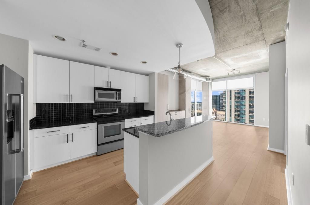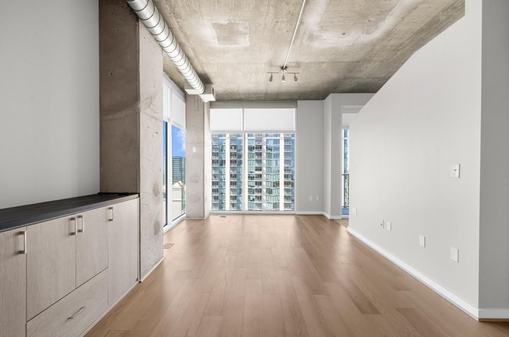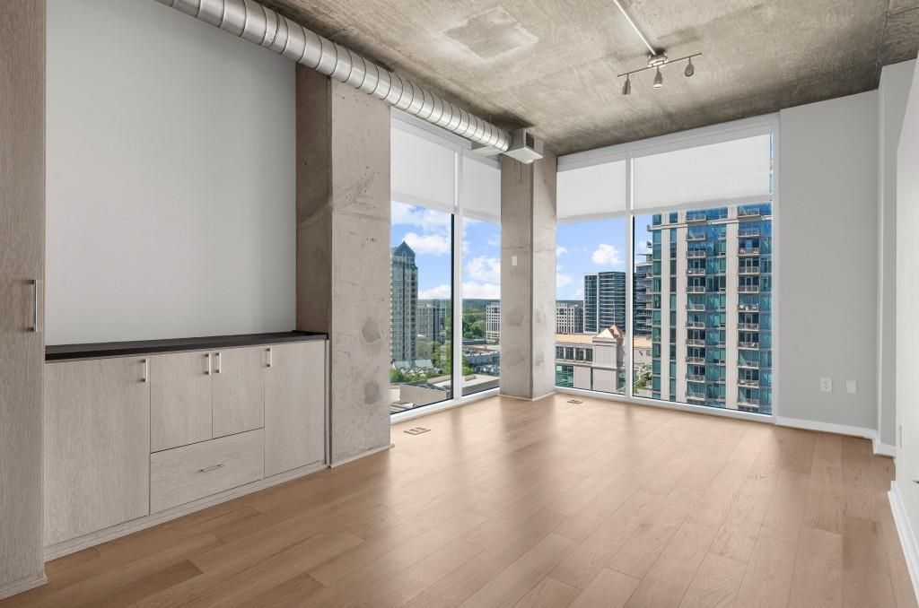 Experience luxury living in Buckhead's Eclipse with this beautifully renovated corner unit, featuring captivating views of the vibrant streets and energy of the Buckhead Village District. Floor-to-ceiling windows and 10-foot ceilings create an open and sun-filled atmosphere perfect for entertaining or relaxing. The contemporary interior features automatic blinds, custom closets - including one in the entry way - and a dry bar with enhanced shelving. A bright kitchen is equipped with granite countertops, a large island with breakfast bar, stainless steel appliances-including a new KitchenAid refrigerator and Bosch dishwasher-and white cabinetry. A washer and dryer are also included for ultimate convenience. New hardwood floors enhance the living and dining areas, while the bedroom suite features a private balcony. The spa-inspired bathroom offers a beautifully tiled shower, a new generously sized vanity and walk-in closet with tailored shelving for optimal storage. Brand new carpeting in the bedroom and closet, and freshly painted walls throughout complete this turn-key home. Residents enjoy a range of exceptional amenities, including a professional concierge service, and inviting club room, a well-equipped business center, swimming pool, grilling stations, and a state-of-the-art fitness center featuring free weights, machines, and Pelotons. This unit includes a designated storage area and an assigned space in a secure-access garage. Offering convenient access to major thoroughfares and proximity to premier dining and shopping in Atlanta's Buckhead Village District, as well as the renowned Fetch dog park, this residence presents an exceptional blend of luxury, convenience, and elegance.