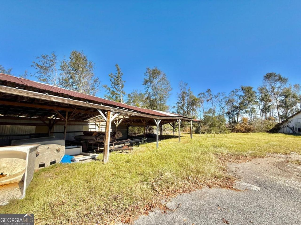 This property offers the new owners several opportunities. It has 2 septic tanks and city water which allows for possible rental housing options. The fencing on the property keeps a safe environment for any venture the new owner dreams up. A retail area with warehouse space, open canopy storage for flea market sales, produce market, possible dog boarding/grooming just a few of my ideas. The location is on US 221 which allows easy convenience between Hazlehurst and Douglas. The seller will be removing some inventory stored on the premises and cleaning up the storm damage before closing with new owner. Offered As-is.