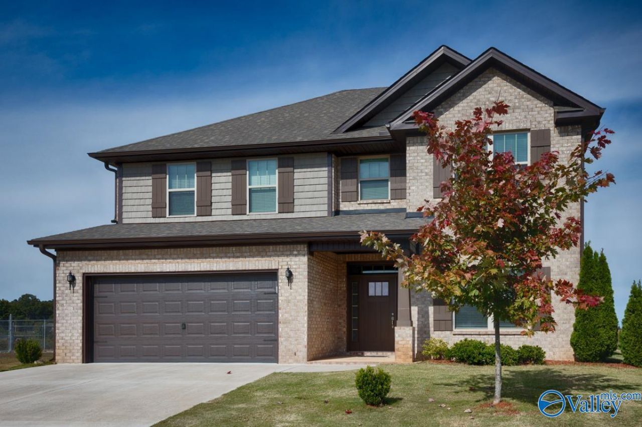 Move-in ready Meridianville AL home for sale in one of the area's fastest-growing communities! This 4-bedroom, 2-car garage home features a secluded downstairs owner's suite with double vanities and oversized walk-in closet, plus a spacious bonus room upstairs. The gourmet kitchen offers GE stainless steel appliances, granite countertops, gas stove, and tiled backsplash. Enjoy a cozy gas fireplace and flex room ideal for a home office or dining space. Full brick exterior, covered patio, extended driveway, sprinkler system, and private sewer. Washer, dryer, and blinds included. Perfect for buyers seeking Madison County real estate, new construction homes, and family-friendly neighborhoods.