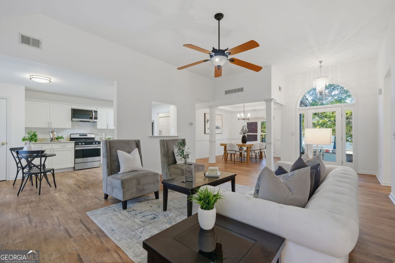 Move-In Ready UPDATED Cul-De-Sac RANCH with NO HOA. Tucked away on a quiet, single-street cul-de-sac, this brick-front ranch offers the perfect combination of comfort, flexibility, and location - all with no HOA restrictions. The home has been thoughtfully maintained, including updated kitchen and bathrooms with modern finishes that blend style and function. Beyond the visible updates, this home has been meticulously maintained for lasting quality. Recent maintenance includes professional roofing seals, a refreshed HVAC stack, and updated ventilation for peak safety and efficiency. With freshly serviced gutters and a new dryer vent, these proactive improvements offer the added peace of mind that comes with a truly move-in-ready home. Inside, vaulted ceilings create an open, airy feel throughout the main living space. The layout is ideal for privacy, with the primary suite set apart from the two secondary bedrooms. Washer, dryer, and refrigerators in kitchen and garage are included, making your move seamless. Step outside to a level, private backyard designed for easy enjoyment. The rear patio with retractable awning creates a comfortable space for relaxing or entertaining, while the storage shed adds practical convenience. Outdoor adventurers, or those simply needing extra space will appreciate the 2-car side-entry garage plus a 2-car detached carport - ideal for additional vehicles, boat or RV storage. Located within walking distance to Haw Creek Elementary and Lakeside Middle School, just half a mile to Haw Creek Park's trails and playground, and minutes from Lake Lanier's waterfront parks, this home offers exceptional access to both nature and daily conveniences. With quick access to GA-400, Market Place Blvd, and Downtown Cumming, everything you need is just minutes away. Single-level living, thoughtful updates, and unbeatable flexibility in a prime Forsyth County location - this one checks all the boxes!
