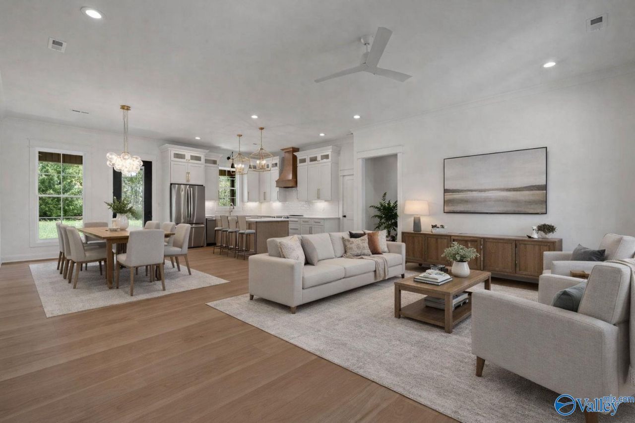 Generational Living at its Finest! Stunning new Elkmont community! This home, 1 of 3 built on 1 acre! The blend of elegance & craftsmanship features, semi-custom cabinetry w/sleek quartz countertops throughout. The chef's kitchen features stainless steel appliances, a scullery, and an oversized prep island overlooking the dining area. The luxurious primary suite offers a zero-entry shower with custom tile and a freestanding tub. Additional features include waterproof engineered flooring, architectural shingles, and grand exterior doors. Nestled in tranquil privacy, this home combines elegance with room to build or expand adjoining lots.
