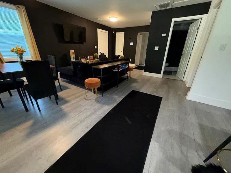It's a stylish 3-bedroom, 2-bath with a sleek black-and-white modern design and a charming blue front door.The house is located on the west side of Atlanta in Cedar Hills.