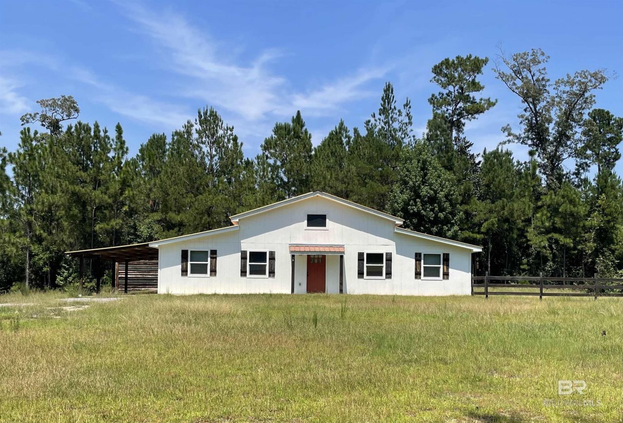 Motivated Seller! Experience the ultimate retreat in this charming barndominium built in 2021 on 3.75 acres, perfect for a weekend getaway or full-time residence. Home features 2 bedrooms and 1 bath, open concept kitchen, dining and living room. All lots have access to the Little Escambia Creek through a 60-foot easement at the back of the property. Built to last, this home rests under 3/4 plywood, rolled rubber, metal roof and enclosed with 6 foam insulation in the 2x6 walls and ceiling. Heating and cooling are provided by 2 mini-splits to keep you in comfort year round. The rear patio is perfect for relaxing outside and enjoying the views. There is a small 11x12 attached garage for parking a golf cart or riding mower and a double carport. There is also a 14x14 shed that is treated wood and offers additional storage. Only a few miles from Flomaton and Brewton, you have access to both in minutes and only approximately one hour to the white sandy beaches of the gulf. If this sounds like the place to call home, give me a call today and let's make it happen! Buyer to verify all information during due diligence.