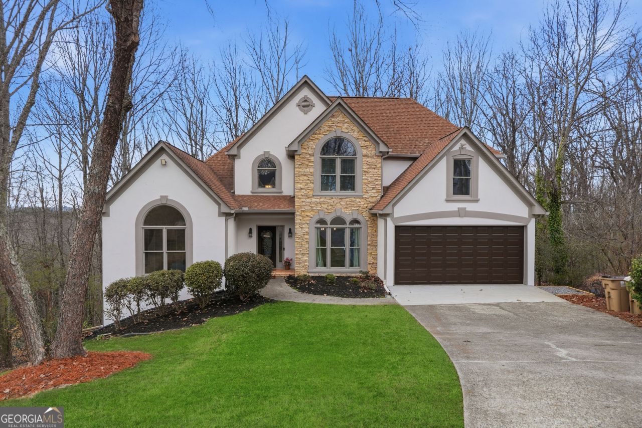 Enjoy breathtaking sunset views and stunning vistas of Sawnee Mountain & Cumming City Center from your private deck and owner's suite. No HOA. Ideally located just minutes from Lake Lanier, this beautifully updated executive home blends luxury, convenience, and natural beauty in one exceptional setting. Recent improvements include remodeled bathrooms and kitchen, freshly painted exterior, new garage floors, and newer stainless-steel appliances. Elegant hardwood flooring flows throughout the main living areas, complementing the grand entry and spacious family room that create an open, inviting atmosphere. The expansive kitchen features abundant cabinetry, a center island, and stainless appliances-ideal for everyday living and entertaining. A double-sided fireplace offers a warm and cozy gathering space adjoining the kitchen. The main-level owner's suite showcases a large picture window with distant mountain views and a spa-like bath designed for relaxation. A guest bedroom and full bath on the main level provide flexibility for visitors or multigenerational living. Upstairs offers two additional bedrooms and a full bath. Step outside to a private, wooded backyard with excellent potential to create a terraced outdoor retreat, firepit area, or garden oasis. The unfinished basement provides excellent potential for future expansion.