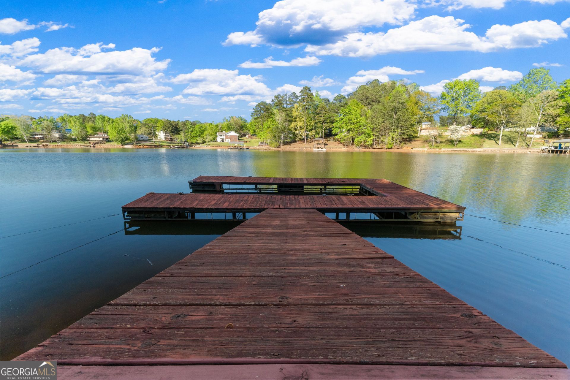 Lakefront estate on 3.52 acres! Featuring 6,310 sq ft of living space, 2 car garage, and a separate barn perfect for boat storage. Situated on a level lot with 163 ft of shoreline with a floating dock, boat slip, all in close proximity to a boat ramp. The gated entry leads to a circular drive with the property partially fenced. The covered front porch welcomes you to a rock foyer and a stunning living area with wood details, rock fireplace and an impressive kitchen with granite, an island, and stainless appliances. The expansive primary suite is on the main along with a study, large laundry area, pantry, and half bath. The screened in back deck expands the length of the home. Upstairs features 4 bedrooms, sitting area, craft room, and a full bath. The terrace level offers a full kitchen, living area, 2 bedrooms, 1.5 baths, & garage. Perfect home for multiple families or just a private lake estate! Energy efficient construction & new roof installed in 2024.