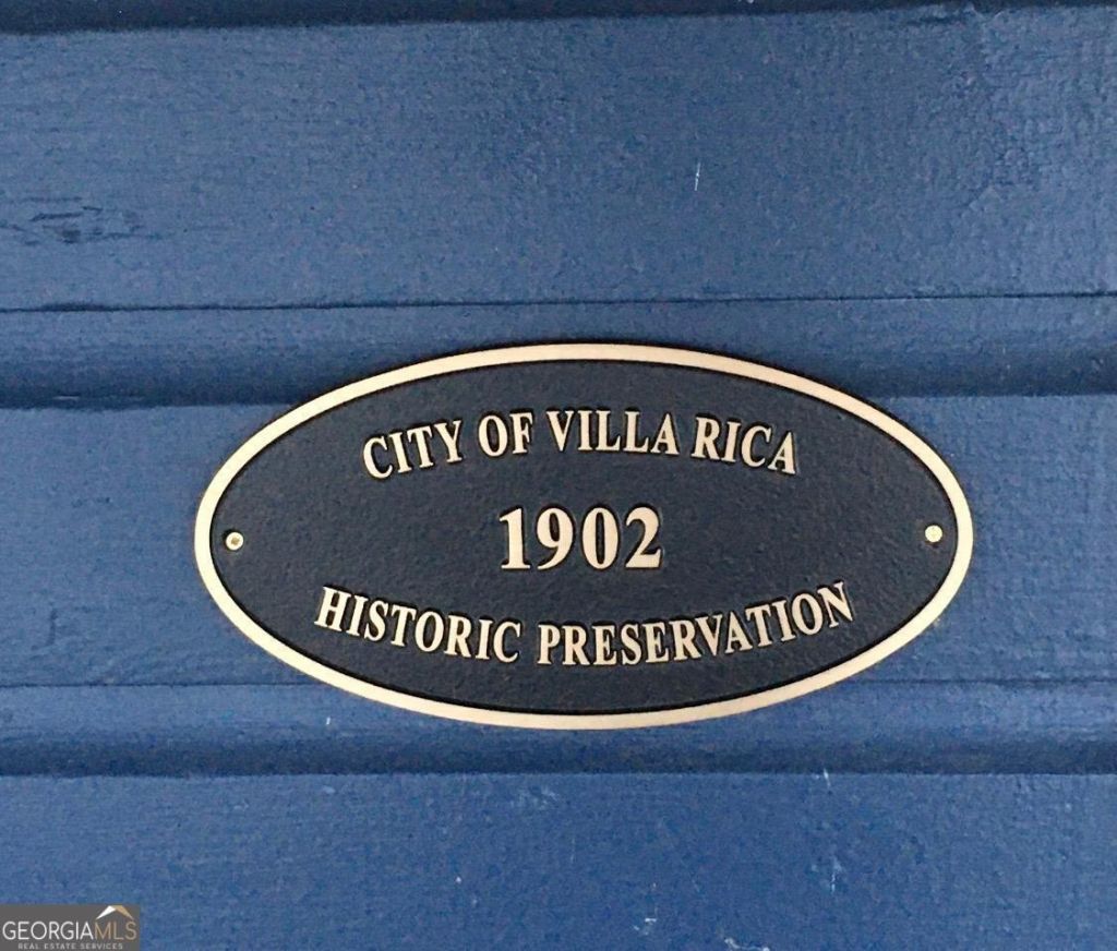 Historic Home! Awarded Plaque by The City Historic Preservation Commission! Zoned Residential or Light Commercial! The Character and Craftsmanship in this gorgeous home is a must see! This timeless beauty offers original Heart of Pine Wood Floors 120+years old and Meticulously Preserved (they look amazing)! Original 10 ft tall Wood Ceilings! Crown molding throughout entire home! Spacious Kitchen with Ample New Cabinetry, Stainless Steel Appliances and Granite Countertops for all your entertainment needs! Roomy Primary Bedroom with High End Luxurious Bathroom (New Vanity and Italian Marble Tops with Glass and Tile Shower)! The entire home has amazing attention to detail in every room! 2nd bedroom (can be used for an office or den) features Custom built-ins, Gas Fireplace with Luminous Onyx Surround! Awesome views from your Covered Front Porch! Enjoy your coffee in the Sunroom overlooking the magnificent backyard! Fully enclosed back garden with 6ft Privacy Cedar Fence! 40 Year Architectural Roof installed 6 yrs ago! Located One Block from Historic Downtown Villa Rica and the Mill Amphitheater! Great Walk Ability to shopping and Restaurants!