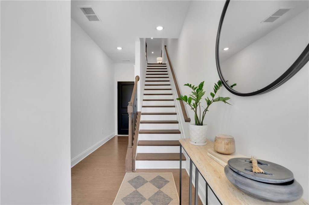 Welcome home to refined living in this stunning 3BR/3.5BA townhome located in Reverie on Cumberland, an exclusive gated community in the heart of Vinings! Featuring a swimming pool, clubhouse with stunning Atlanta skyline views, and fitness center. This beautifully upgraded home showcases 3.5 inch engineered hardwood floors, 9 foot ceilings and high-end finishes throughout all three levels. The terrace level offers a versatile flex space complete with a closet, custom California Closets system, and Murphy bed?ideal for a guest suite, home office, or media room. The main level features a chef's kitchen with upgraded quartz countertops, movable island, white cabinetry, designer backsplash, custom-built pantry, and premium Bosch appliances. The open-concept layout flows seamlessly into the dining area and living room, perfect for entertaining. A custom-designed powder room and a cozy deck with a retractable screen provide added comfort and privacy. Upstairs, the spacious primary suite is a light-filled retreat with a spa-inspired bathroom, oversized upgraded shower, double vanity, and a walk-in closet custom built by California Closets. An additional guest bedroom, full bath, and conveniently located hallway laundry room complete the upper level. Prime location! Just minutes from downtown Vinings, shops, and restaurants, with easy access to The Battery, Home Depot, Costco, and major highways I-285 and I-75.