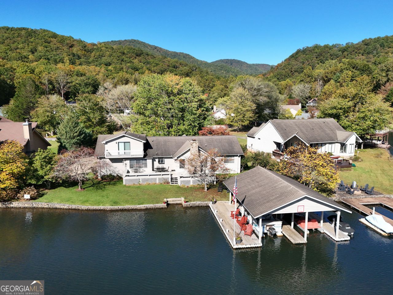 Lake Burton with flat lot and amazing long lake view! Fee simple (private) ownership conveniently located on paved street. There aren't many like these. Four bedroom, 3 bath home with great room, stone fireplace, vaulted living room ceiling, large deck, seawall with stone steps right in to the wonderful swim and floating area. Two stall boathouse, double garage. Seller is a licensed real estate salesperson in the State of Georgia.
