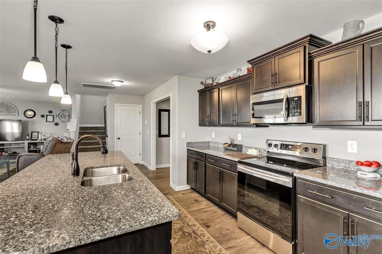 This well-maintained 4/5 bed, 3 full bath home offers an open floorplan with a large kitchen island, granite countertops, tile backsplash & abundant natural light overlooking a private, fenced backyard with storage shed & pool. Nearly every closet is walk-in, including the wood shelving pantry & dual primary closets. The spacious primary suite features tray ceilings, a glamour bath with dual granite vanities, & Closets everywhere! Enjoy sunset views from the covered back porch, plus a firepit & plenty of space to relax or entertain. 2-car garage with excellent storage. Located in Harvest, 14 min. to Clift Farms in Madison & 30 to downtown HSV dining, shopping, & convenience. 30