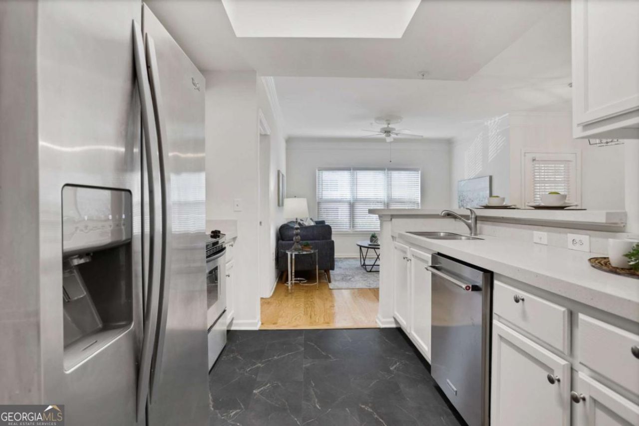 Enjoy luxury living in the heart of the Lenox/Buckhead area at Carrington Park Condominiums! This FULLY RENOVATED, private, ground-level corner unit condo is perfect for enjoying both the peacefulness of the neighborhood and convenient proximity to vibrant city life. The main level features a completely open floor plan with brand-new red oak hardwood floors throughout the living, dining, and bedroom areas, while the kitchen shines with new LVT flooring and freshly painted cabinetry. No detail has been overlooked-featuring soft-close hinges, brushed nickel hardware, a new dining chandelier, custom pantry shelving, and new ceramic bathroom sinks. The modern kitchen includes sleek stainless steel appliances-range, microwave, dishwasher, and refrigerator-paired with sweeping countertops that are sure to impress any home chef. Plenty of windows provide natural light, along with access to a quiet balcony and separate storage space. The spacious bedrooms each have their own bathrooms and massive walk-in closets. All appliances, including the washer and dryer, are included, making this a truly turnkey opportunity. The unit also includes a video and alarm system, as well as a smart thermostat. The community offers numerous amenities, including a pool, fitness center, dog walk, and clubhouse (available by reservation), with plenty of options for relaxation and entertainment - water and sewage are included in the HOA monthly cost! Located next to Phipps Plaza, Lenox Square, Publix, Target, MARTA, and more-enjoy the best of Buckhead living with quick access to everything! Ample unassigned parking is available for you and your guests. Best of all, the unit is FHA FINANCING APPROVED!