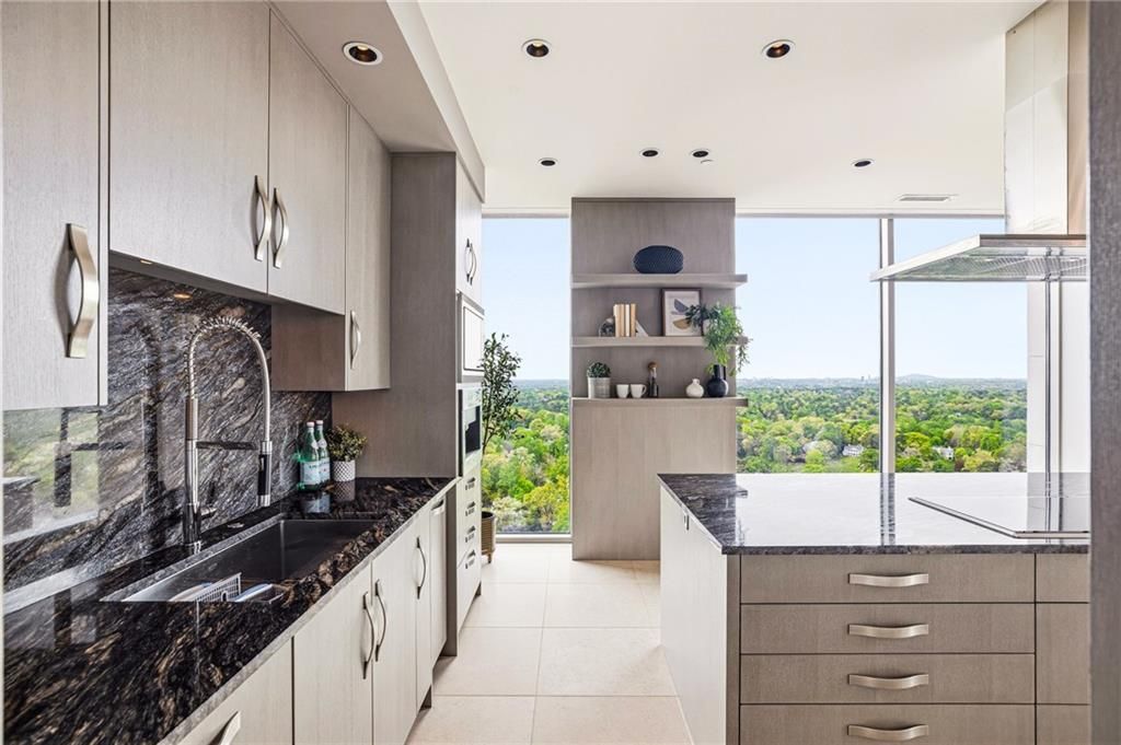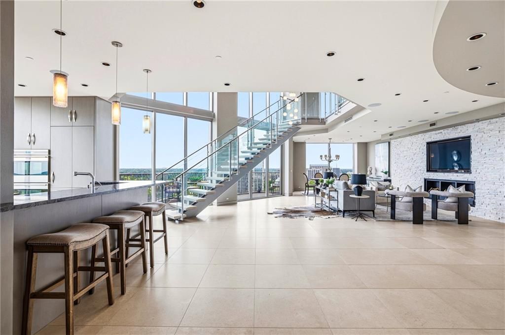 Perched atop the 26th and 27th floors of The Gallery, this one-of-a-kind penthouse delivers an unparalleled blend of sophistication, scale, and designer finishes following a $1M+ renovation. Framed by unobstructed city views and expansive outdoor living, the residence is defined by a dramatic open floorplan, floor-to-ceiling windows, and a striking floating staircase with limestone treads, glass panels, and stainless railings?all anchored by 24x24 limestone flooring and a breathtaking 10-foot Swarovski crystal chandelier. At the heart of the home, a showstopping Design Galleria kitchen rivals the finest European designs, featuring custom cabinetry with soft-close systems, dual pantries, and top-tier appliances including Wolf ovens and cooktop, Sub-Zero refrigeration with drawers, Bosch dishwashers, warming drawers, double wine fridges, ice makers, Viking trash compactors, a built-in espresso machine, and filtered hot water. Seamlessly integrated Crestron smart home technology elevates everyday living, controlling lighting, climate, shades, entertainment, and security with ease. Custom lighting throughout, all on dimmers, enhances the home's refined ambiance. The primary suite offers a true spa experience inspired by Miami's finest retreats, complete with a Kohler air tub, Toto toilet, THG French fixtures, mosaic tilework, floating double vanity with LED lighting, and a Thermasol programmable steam shower with rain head and bench. A boutique-style, room-sized walk-in closet and custom floor-to-ceiling cabinetry with integrated storage complete the suite. Upstairs, Porcelanosa hardwood floors extend through all bedrooms and laundry, while a beautifully appointed guest suite features a Carrara marble vanity, frameless shower, and designer finishes. The living room showcases a Porcelanosa white rock feature wall with a Dimplex fireplace, creating a stunning focal point for entertaining. Additional highlights include energy-efficient zoned HVAC with commercial-grade air handlers, whole-house water recirculation, a private storage unit, and three deeded parking spaces. Residents of The Gallery enjoy a full-service lifestyle with a strong HOA and exceptional amenities including a state-of-the-art fitness center, heated outdoor pool, tennis court, guest suites, business center, club room with catering kitchen, theater/screening room, outdoor fireplace and grilling areas, dry cleaning services, and curated social spaces. The building's unique art program features rotating installations from local artists, with quarterly gallery receptions and community events. This is a rare opportunity to own a truly irreplaceable penthouse?where elevated design, advanced technology, and resort-style amenities converge in the sky. Welcome home.