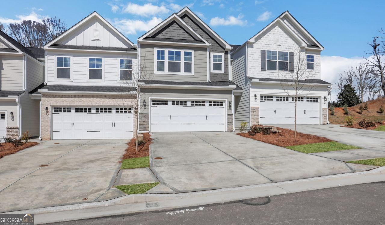 The new construction Southampton plan at 28 Trace Bluff in the highly sought after Villas at Dawasonville Community in Dawsonville, GA is a two-story townhome plan featuring 3 bedrooms and 2.5 bathrooms in 2060 square feet along with a 2-car garage. As you step off the front porch, a long foyer welcomes you and leads into the open-concept main living area. A large family room with a modern fireplace and nicely appointed Cedar Mantel, and also the beautiful Ship Lap Wall is the perfect place for family and friends to gather or for a quiet night with a book or movie. The family room flows seamlessly into the well-appointed kitchen with a large center island, quartz countertops, white subway tile backsplash, Light Gray shaker-style cabinets, and stainless-steel appliances. A dining area directly off the kitchen provides space for a dining table and opens onto the back patio, complete with aprivacy fence on each side.There is also a half bathroom tucked away on the first floor. Up the stairs you'll turn from the large loft into the primary suite. A spacious bedroom is complimented by the en suite bathroom featuring a walk -in shower, dual vanity, water closet, linen closet, and a roomy walk-in closet. Across the loft you'll be led into 2 secondary bedrooms, the laundry room, and an additional bathroom, also with dual vanity, rounding out the upper floor. Just minutes from Downtown Dawsonville and also Rock Creek Sports Complex residents can enjoy endless opportunities for outdoor recreation. With plenty of dining options, shopping centers, and everyday conveniences nearby, Villas at Dawsonville offers a perfect balance of comfort and accessibility so call to make 28 Trace Bluff Community in Dawsonville, GA your new home today! Ready in March of 2026. Buyers can receive up to $6,000 toward closing costs when using Sabal Mortgage.