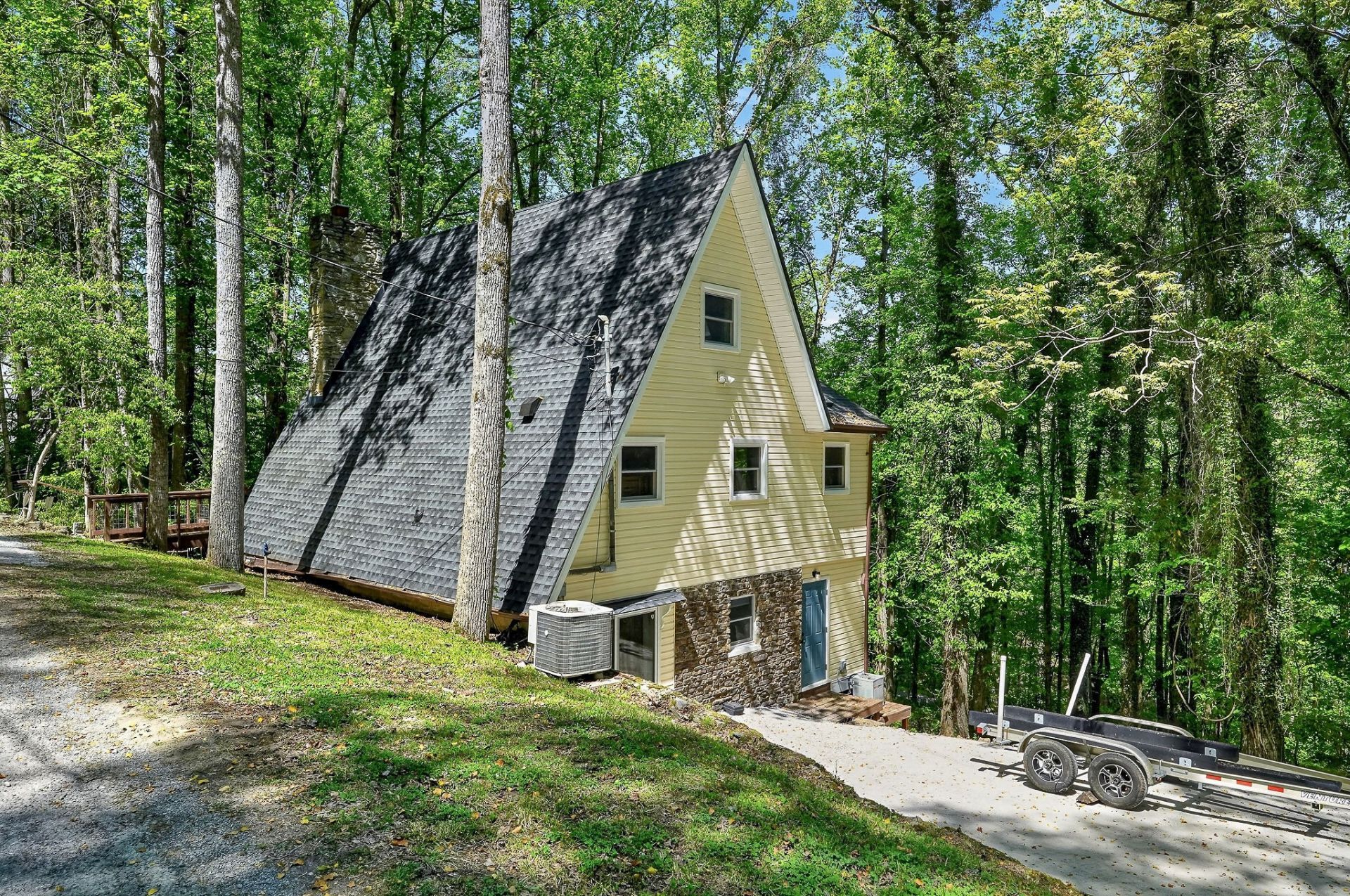 Charming and nostalgic A-frame retreat at the coveted shores of CENTER HILL LAKE, just a stone's throw from Hurricane Marina and Floating Mill. This storybook lake home is offered fully furnished and turnkey-ready for immediate enjoyment or investment! Nestled in its private, wooded setting, the home blends warmth and character with modern comfort. Featuring 4 bedrooms and 3.5 baths, this thoughtfully designed space is for both relaxation and entertaining. An expansive gathering room invites family and friends to come together, while the home's seamless connection to the outdoors creates the ultimate lake lifestyle experience. Enjoy peaceful mornings surrounded by nature, afternoons on the water, and evenings under the stars. Multiple outdoor areas provide the perfect backdrop for entertaining or unwinding in total privacy. Whether you're seeking a personal getaway or an income-producing property, this home offers flexibility with short-term rental eligibility. The ideal Center Hill Lake retreat -timeless, inviting, and ready to enjoy from day one!