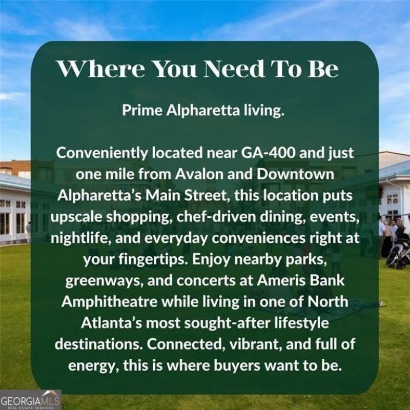 || MOVE-IN READY || END UNIT TOWNHOUSE || OPEN CONCEPT LIVING || PRIVATE FENCED BACKYARD || UPDATED KITCHEN & BATHS || NEAR TOP-RATED SCHOOLS & SHOPPING || Welcome to this beautifully updated 3-BEDROOM, 2.5-BATH END UNIT TOWNHOUSE in the heart of Alpharetta-perfect for savvy buyers seeking VALUE and INVESTMENT POTENTIAL. With OPEN CONCEPT MAIN LIVING, the moment you step in, you'll FEEL the bright, airy flow of space, accented by WOOD-LOOK TILE that stretches through the main level and into the SPACIOUS PRIMARY SUITE. The PRIMARY BATH is your private retreat with a double vanity, separate tub and shower, and freshly painted cabinets that gleam in crisp white. The KITCHEN is designed for entertaining or everyday life, featuring GRANITE COUNTERS, stainless steel appliances, and cabinets newly painted for a clean, modern feel. Upstairs, TWO ADDITIONAL BEDROOMS with brand-new carpet and a full bath updated with a stylish vanity, light fixture, and faucet make family, guests, or tenants feel right at home. Step outside to your PRIVATE, FENCED BACKYARD with stone pavers-a space made for weekend BBQs, relaxing evenings, or rental-ready appeal. The entire home has been freshly painted in neutral tones, creating a bright and inviting atmosphere that instantly feels like home. Location maximizes convenience and lifestyle: walk or drive to COSTCO, WALMART, restaurants, retail, and more. Quick access to HIGHWAYS, HOSPITALS, and TOP-RATED SCHOOLS makes this property as practical as it is appealing. Whether you're looking for a comfortable personal home or a high-demand rental in a thriving area, this end unit blends STYLE, COMFORT, and INVESTMENT POTENTIAL seamlessly-don't miss your chance.