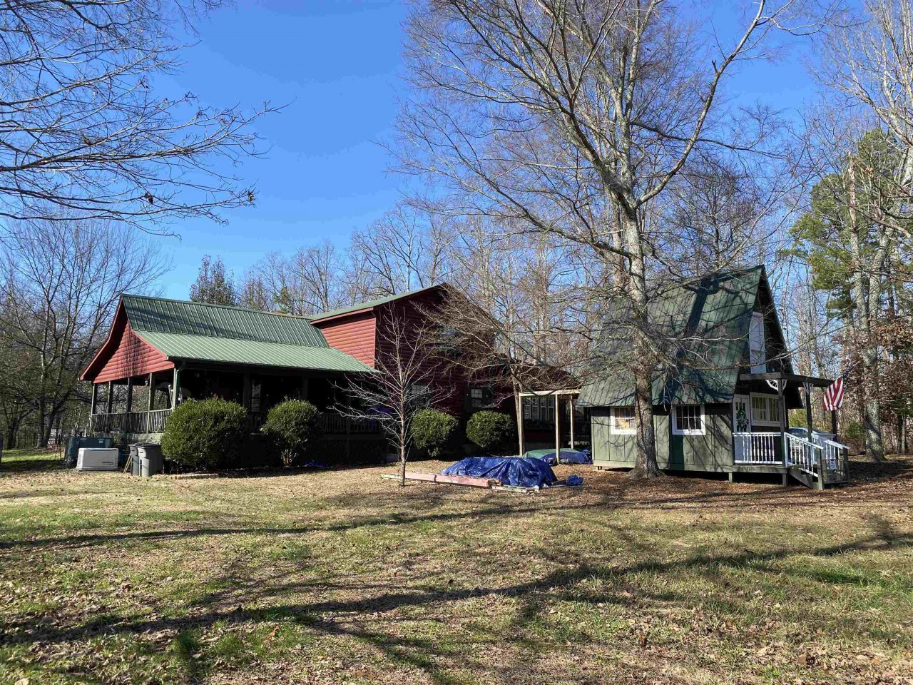 #5501- HOME FOR SALE IN TN, SHOP, BARN, STORM SHELTERS! Escape to your own Retreat w/this Stunning Country Home Nestled on 3.86 Ac+/- in Hardin County, TN. Perfect for Nature Lovers & Outdoor Enthusiasts, this Property Offers 3BD/3BTH, 2 Kitchens, Large Great Room w/Gas Fireplace Open to Custom Kitchen Area, Covered Porches & a Big Screened-in Porch w/8 French Doors that Open to Great Room to create a Unique, Inviting Atmosphere. Master Suite on Main Level w/Large Walk-In Tile Shower, Separate Living Room w/Fireplace, 2BDs Upstairs w/Full Bath & Office, & the Perfect Storm Shelter w/ Easy Access & Secure Door w/Concrete Walls, Ceiling, & Floor. 20x24 Shop w/Electric just off the Back Porch, Barn, & Tiny Home in Front Yard planned for a Craft Room. There is also an Exterior Storm Shelter, Generac Generator, 2 Propane Tanks, and a Well Thought-Out Fencing for Dogs. Home could be easily split w/2 living quarters & only share the laundry room. Possible for a Bed & Breakfast or Airbnb.