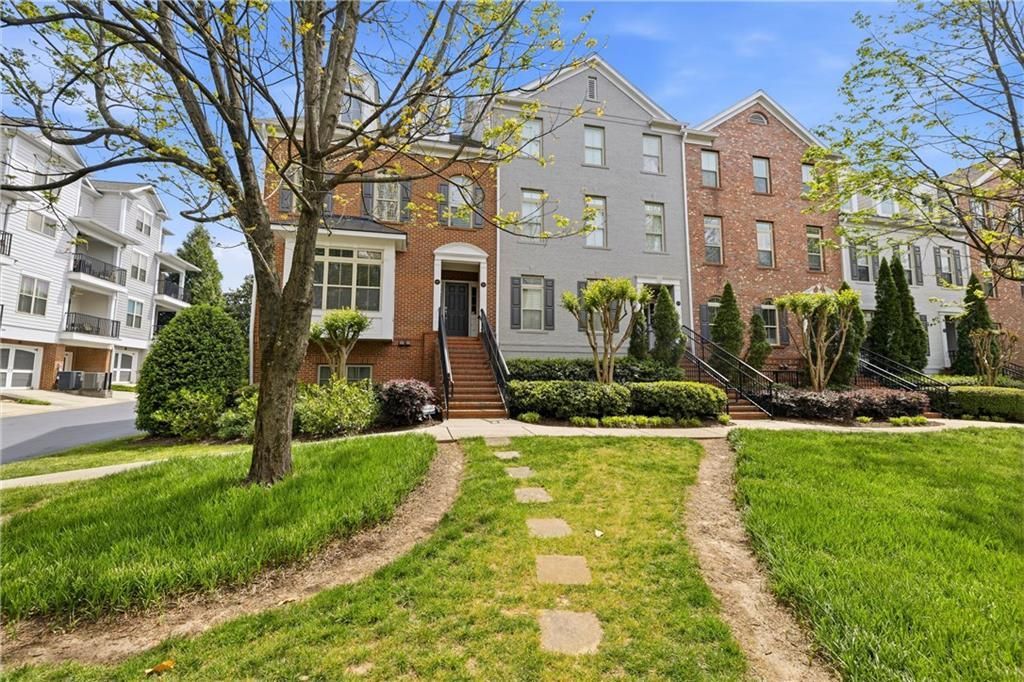 LOCATION, LOCATION, LOCATION! This townhome is in one of the most desirable pockets of Sandy Springs. This rare upper-level end unit offers a unique blend of privacy, charm, close proximity to incredible restaurants and so much shopping. From the moment you step inside, natural light pours through the windows, filling the home with warmth and creating an inviting, airy atmosphere. The main level is anchored by a dramatic vaulted fireside living room, where mornings begin with coffee in the sunlight and evenings wind down by the fire. Hardwood floors flow seamlessly into, leading you into a thoughtfully designed eat-in kitchen featuring stainless steel appliances, generous cabinetry, and a separate pantry. Just off the kitchen, a spacious ensuite bedroom offers flexibility for guests, a roommate, or even a private main-level retreat. Step outside onto the covered back porch overlooking mature trees and local shops. Upstairs, the primary suite feels like its own sanctuary. Featuring a dedicated office or lounge space, it's ideal for working from home or creating a cozy reading nook. The suite is complete with a large walk-in closet, another in the hallway and a well-appointed bathroom with double vanities, a soaking tub, and a separate shower. Beyond the home itself, the lifestyle is what truly sets this property apart. Located in a prime Sandy Springs location, you're just steps from local favorites, boutique shopping, top-rated dining, parks, and the energy of downtown. Take advantage of the free concerts over the summer months. Everything you need is right outside your door, whether it's a quick coffee run, an evening out, or a weekend stroll. The HOA covers exterior maintenance, landscaping, and gas making it easy, low-maintenance living. This is more than a home, it's a lifestyle opportunity in the heart of Sandy Springs.