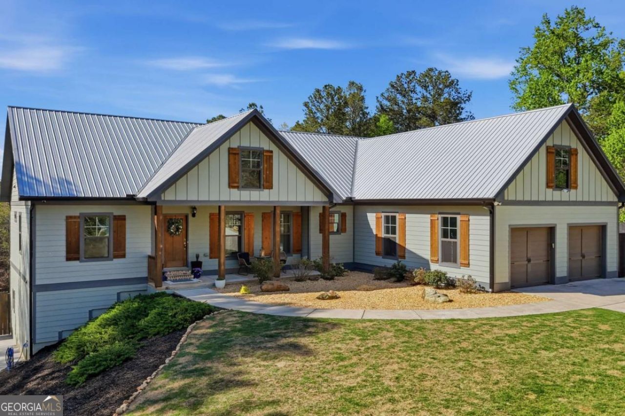 Set on just over 2 private acres along a peaceful road minutes from Downtown Ball Ground and I-575, this custom-built 2020 craftsman ranch delivers a rare combination of privacy, flexibility, and thoughtful design. Hardwood and tile floors run throughout the home, while the main level offers an open-concept layout built for both comfort and function. The kitchen makes a statement with a massive island, double ovens, gas cooktop, granite countertops, tile backsplash, abundant cabinetry, and a walk-in pantry, all opening to the main living area. A mud room, spacious laundry room with built-in storage, and main-level primary suite further elevate the home's everyday livability. The fully finished terrace level is exceptionally well equipped with two bedrooms, two full bathrooms, one half bath, a bonus room, a full kitchen, second laundry room, living room, and gym/game room. Private exterior access and a separate powered concrete driveway create outstanding flexibility for guests, extended living arrangements, or private secondary living. Outdoor spaces are a highlight, with a screened-in deck, open-air decking, covered patio, and a gunite, salt water, HEATED pool and spa positioned to enjoy the property's peaceful setting. With a metal roof, handicap accessibility, NO HOA, abundant parking for your RV, camper, trailers, and ATVs, plus a graded area ready for a future shop or detached structure, this property offers the freedom and versatility buyers rarely find in newer construction. A truly hard-to-find Ball Ground property that combines custom construction, acreage, separate living capability, and outdoor amenities in one complete package.