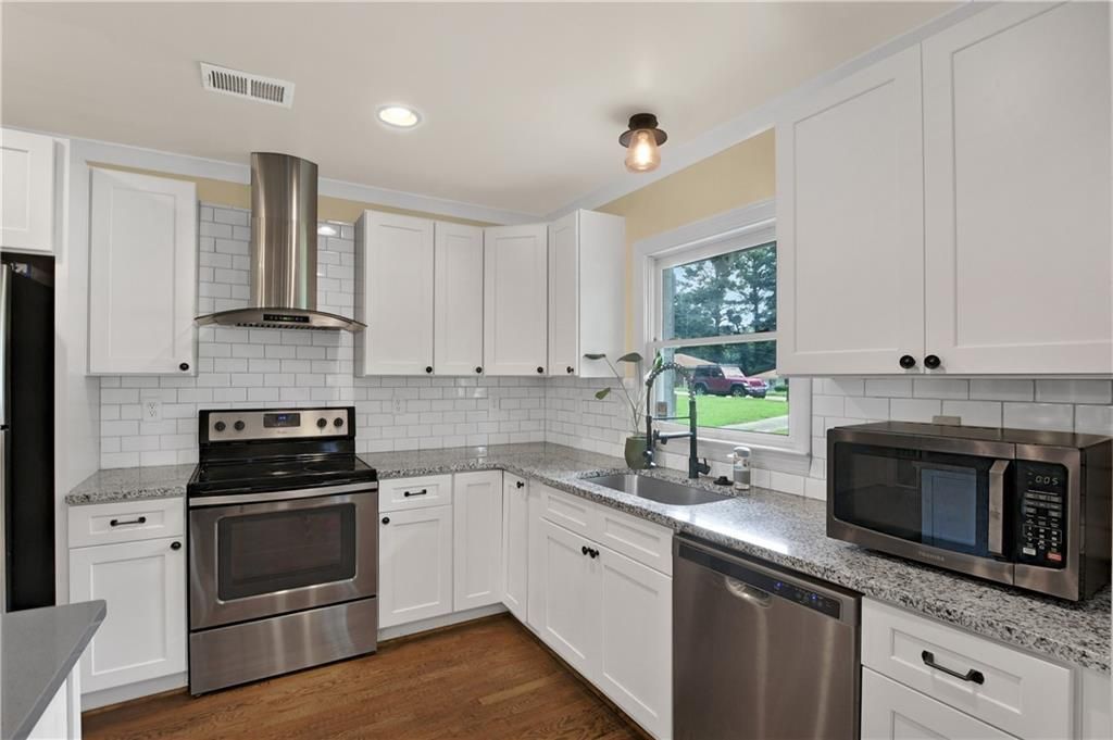2871 Belleau Lane offers the perfect blend of comfort, convenience and character - ideal for first time homebuyers, growing families, or anyone looking to enjoy the best of East Atlanta living! Real hardwood floor welcomes you from the door and carries you through the home to the kitchen- updated with modern appliances, granite countertops, subway tile backsplash, and breakfast bar. The generous primary bedroom includes an en-suite bathroom and a spacious walk-in closet. From the breakfast area, you enter the covered, screened and fully furnished back deck that overlooks the oversized and partially wooded backyard. The basement offer a tremendous space, ready for your vision. Whether you need a home theater, gym, workshop, man cave, office or just need serious storage... this basement delivers. This address is minutes from I-20, EAV, downtown ATL, major hospitals, top-rated parks, dining breweries and shopping. Don't miss this opportunity to live in an upgraded, low-maintenance and convenient home!