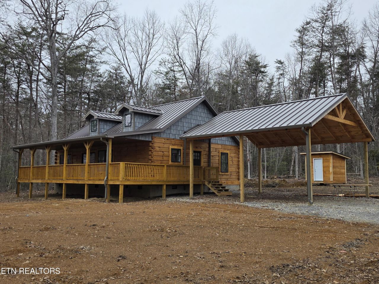 Experience the charm and comfort of true Tennessee cabin living with this under-construction 1,200 sq. ft. log cabin. Loaded with premium features. Built for longevity, this home offers a standing-seam metal roof and long-lasting metal shake in the gables, giving it exceptional durability and timeless charm. Ideally located between Cookeville and Crossville in the sought-after Cumberland Lakes community. Outdoor living is a dream with a covered 10' x 44' front porch overlooking a spacious yard, ideal for relaxing, entertaining, or enjoying the natural surroundings.The home offers three bedrooms and two full baths. Step inside, the open floor plan features cathedral ceilings and vinyl plank flooring, while all exterior walls showcase authentic log construction that brings warmth and character throughout the home. The cabin is equipped with central heating and cooling, ensuring comfort year-round.The kitchen is a chef's dream, complete with samsung stainless steel appliances, quartz countertops, a microwave drawer in the island, and a downdraft range.The master suite is a private retreat, complete with cathedral ceilings, a large walk-in closet, and a luxurious tiled walk-in shower with matching tile floors. The second full bathroom includes tile floors and a tub/shower surround, offering comfort and convenience for family or guestsAdditional property features include a matching log water well house and fiber-optic internet, making this cabin ideal for working from home. Located in a quiet, well-maintained subdivision, the property offers both privacy and community amenities.As a Cumberland Lakes property owner, you'll have access to two private lakes-Cumberland Lake (41.2 acres) and Lazy Lake (15.5 acres) just across the road. Both lakes are perfect for kayaking, paddleboarding, or fishing, and electric boats are welcome. The community also features three common parks, picnic areas, a clubhouse, and 25 miles of scenic roads connecting the lakes and natural park areas-ideal for cycling, walking, and exploring.