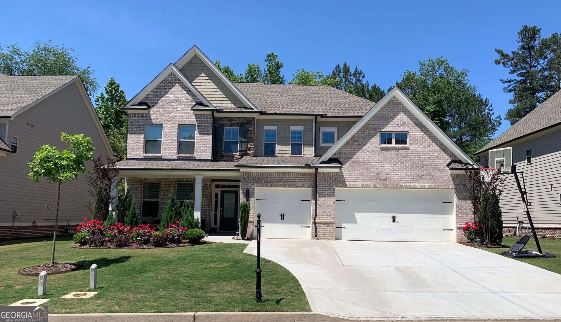 Nestled in the heart of Cumming within the desirable Herrington Glen community and an award-winning school district, this stunning 5- bedroom, 4-bathroom home is a perfect 10. Welcoming you with beautiful landscaping and timeless curb appeal, the four-sided brick exterior sets the tone for the quality and elegance found throughout. As you step inside, you are greeted by a formal living or office space that flows seamlessly into a spacious great room featuring a cozy fireplace and custom built-in bookshelves-ideal for everyday living or entertaining. Adjacent to the great room, the bright dining room offers French doors that open directly to the patio, creating a seamless indoor-outdoor connection. The chef's kitchen is thoughtfully designed with a large center island and breakfast bar, double ovens, a separate gas cooktop, and a butler's pantry for added convenience and storage. A main-level guest bedroom with a full bath provides flexibility for visitors or multigenerational living. Engineered hardwood floors throughout the main level enhance both elegance and comfort. Upstairs, a generous loft/media room offers additional living space, while plush carpeted bedrooms showcase elegant trey ceilings throughout. The oversized primary suite is a true retreat, featuring a stunning triple trey ceiling, a sitting area, and French doors that open to a private upstairs patio. The spa-inspired primary bathroom includes a soaking tub, separate shower, dual vanities, and beautiful stone tile flooring. One of the three upstairs secondary bedrooms also features its own private full bath, offering added comfort and privacy. Step outside to enjoy the professionally landscaped, level, and private backyard-perfect for entertaining, relaxing evenings, or outdoor gatherings. A spacious two-car plus one-car garage provides ample parking and storage. Residents of Herrington Glen enjoy swim and tennis amenities, and the home is ideally located just minutes from Downtown Cumming, The Collection at Forsyth, Halcyon, GA 400, Lake Lanier, and Cumming City Center. This exceptional home offers the perfect blend of luxury, location, and lifestyle.