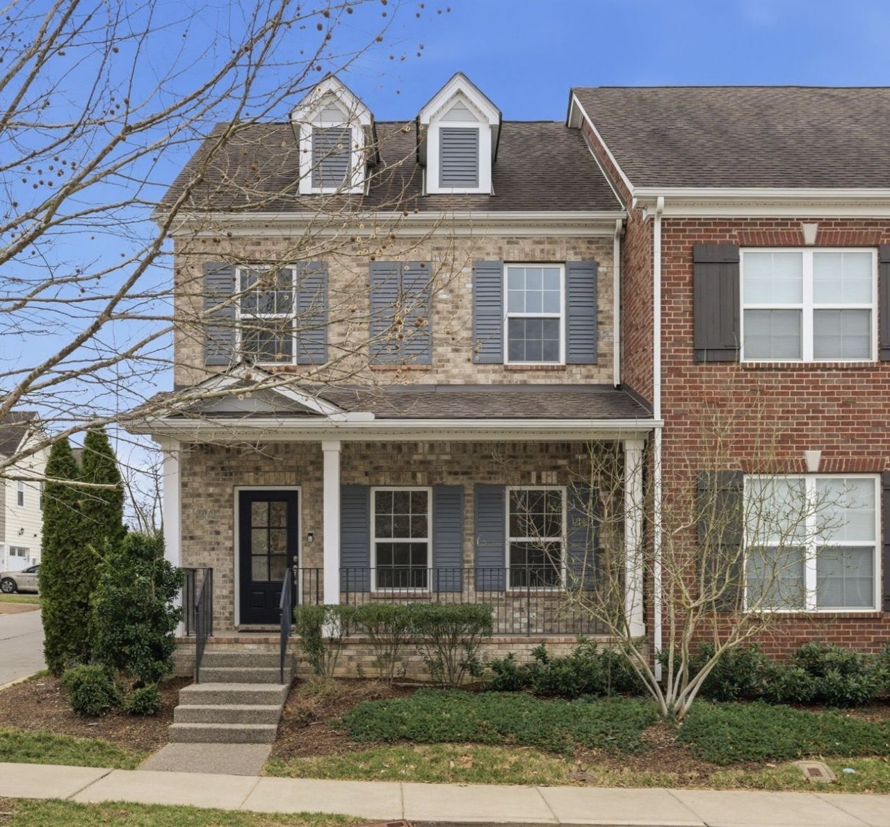 Turnkey living in the heart of Franklin! This freshly updated all-brick townhome presents a standout opportunity for buyers seeking a move-in ready home in a highly convenient location. Interior improvements include fresh paint throughout, painted kitchen and bath cabinetry, stainless steel appliances, new carpet upstairs, and a freshly painted front door. Hardwood floors anchor the main level with an open flow connecting the living, kitchen, and dining spaces. The light-filled kitchen features granite countertops, stainless appliances, classic white cabinetry, and a central island perfect for gathering and everyday living. The charming dining area features built-in bench seating with shiplap detail, adding both character and function. Upstairs, three bedrooms include a spacious primary suite with custom paneled accent wall and double vanities. The welcoming front porch creates the perfect setting for morning coffee or evening unwind. Conveniently located across from Poplar Grove School with easy access to downtown Franklin, shopping, and dining.