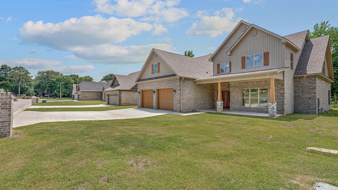 Luxury new construction located south of the bypass in Jonesboro, AR within the Jonesboro School District. This home offers approximately 3,830 sq. ft. of living space with 4 bedrooms, 3.5 baths, and a bonus room. The master suite includes double glass doors leading to the back porch. The kitchen is designed for entertaining with granite countertops, a 9???x54??? island, Bosch appliances, and a formal dining area. The living room features a vaulted ceiling with a stylish fan and a floor-to-ceiling gas log fireplace. Bedrooms include oversized walk-in closets. An upstairs balcony overlooks the spacious living area, adding to the open feel. Outdoor living is enhanced with stamped concrete and a tongue-and-groove ceiling on the porch. Energy-efficient construction with R38 fiberglass blown insulation provides year-round comfort. This is a new construction home, however some of the listing photos have been virtually staged to show what the home could look like with furnishings! This home is move in ready and easy to view anytime. Call today to take a look in person!