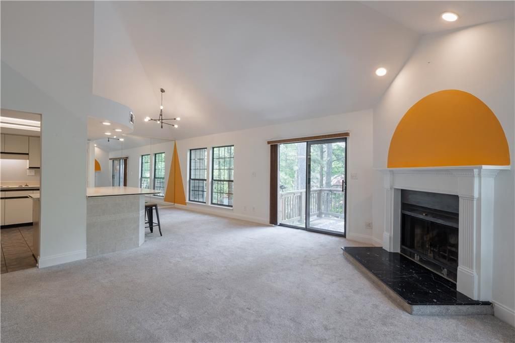 This beautiful vaulted ceiling condo is move in ready, and very close to the downtown Alpharetta square. Kitchen and living room has a large open layout with bright natural light. Large bedroom sizes. Primary and secondary bedrooms both have direct bathroom access. Newly renovated bathroom with soaking tub. Large bonus room upstairs. Private deck that opens off the living room. Newly added firepit area out front. No rent restrictions with the HOA. Close to Avalon and downtown Milton. Short commute to GA-400/US-19.