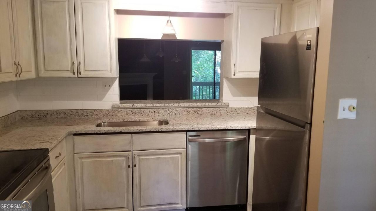 Two story condo less than a mile to downtown Alpharetta. Close to Wills Park, schools, shopping, 400 and 285. No unit above or below. Balcony at each level overlooks private wooded backyard. Stainless steel appliances and granite countertops installed Sept 2023. Laminate wood flooring on both levels. Trash, Water, Sewer and Termite/Pest Control included in Condo Association.