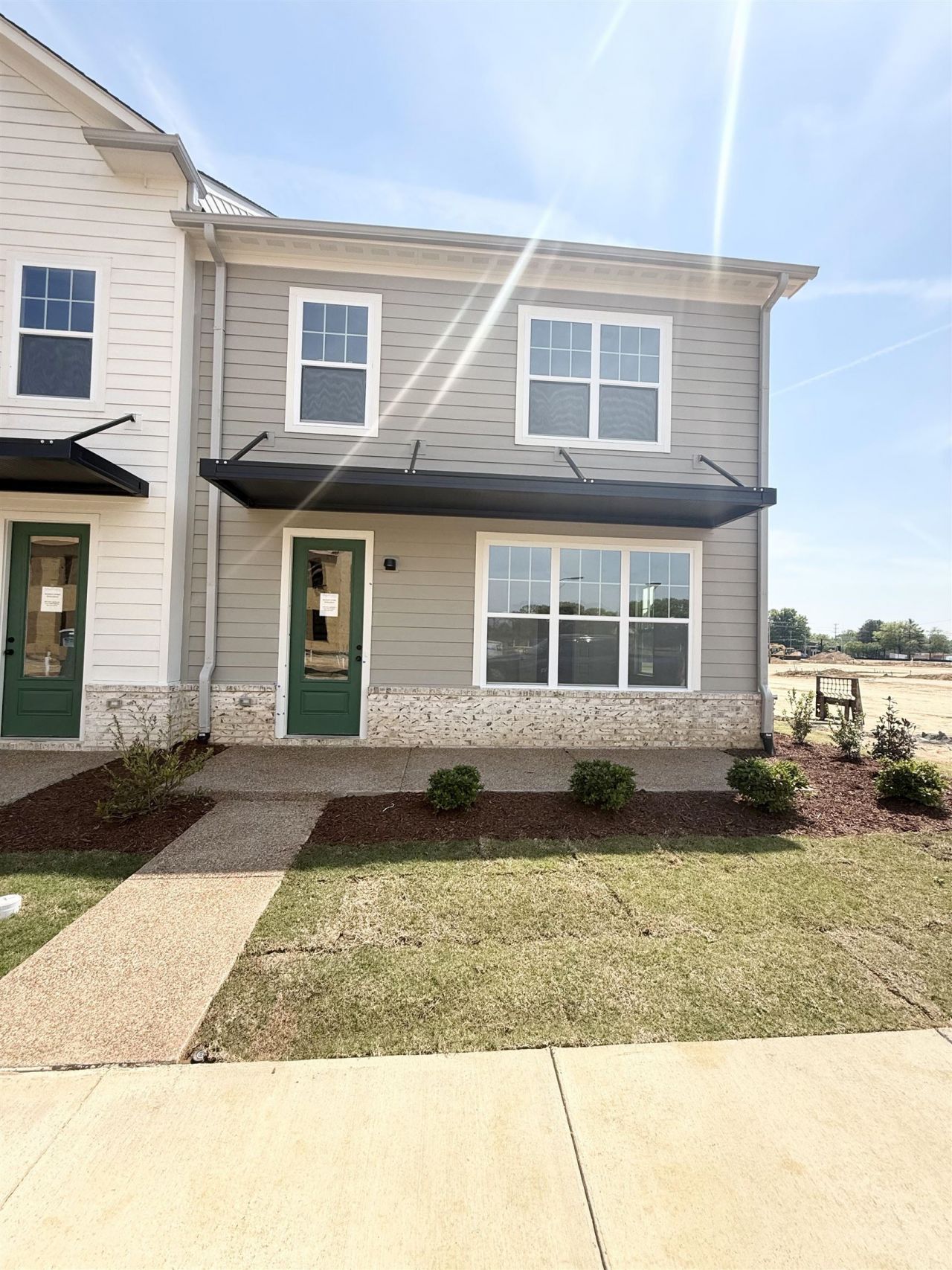 OFFERING 4.99% INTEREST RATE PROMO AND UP TO 3% TOWARDS CLOSING! Our next townhomes are officially under construction! Primary Suite downstairs! 1/2 Bath for guests downstairs! RevWood Flooring throughout the downstairs, and hardwood on stairs! Electric fireplace in living room! Quartz countertops everywhere! Designer Color Palette for each individual style! Blinds included! 2 Bedrooms, loft, and full bathroom with double sink vanity upstairs! 2 Car Attached Garage! HOA covers lawn maintenance and exterior building maintenance! Future Pool! Walking Trails! Neighborhood Pond!