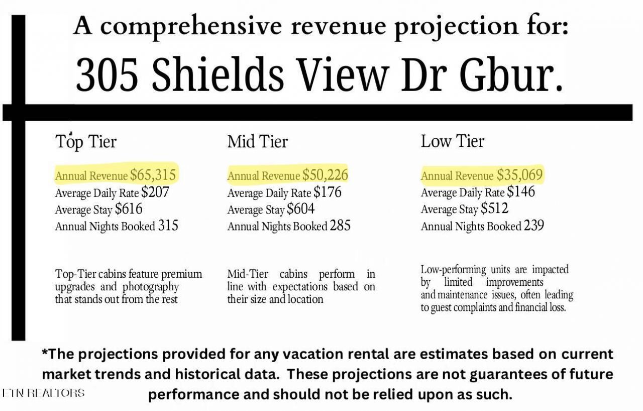 JUST 10 MINS FROM DOWNTOWN GATLINBURG'S ATTRACTIONS, this turnkey property has everything you need - from its cozy electric fireplace to the luxurious walk-in tile shower. The home boasts NEW luxury vinyl plank (LVP) flooring, a NEW refrigerator & NEW dishwasher, and a recently added carport.NEW HVAC with dehumidifier, NEW basement air purifier & a built-in/whole home dehumidifier just installed!Escape to your own slice of mountain paradise at 305 Shields View Dr! This charming, fully furnished one-level home offers the perfect blend of tranquility and convenience, nestled on a peaceful street with a soothing creek out front.Whether you're looking for a lucrative short-term rental ($35k to $65k rental projections!) or a personal mountain retreat, this move-in ready gem won't last long. Enjoy easy single-level living with the relaxing sounds of the creek - schedule your showing today!Per seller, price is FIRM.