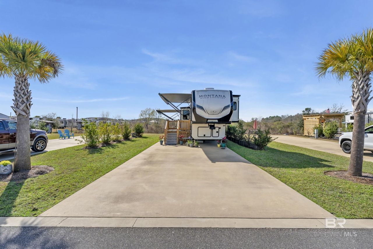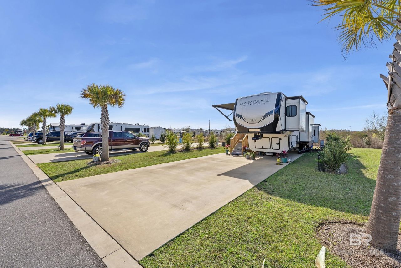 Experience the best of Gulf Coast living at Lot 5 in Grand Riviera RV Resort - a premier, gated RV community where upscale amenities and relaxed coastal vibes come together seamlessly. This exceptional lot offers the ideal setting to enjoy resort-style comforts while maintaining the freedom and flexibility that make the RV lifestyle so appealing. Thoughtfully designed for comfort, connection, and convenience, this community delivers an experience far beyond the ordinary. Whether you're envisioning weekend escapes, extended seasonal stays, or exploring investment opportunities, Lot 5 offers outstanding versatility in a prime location. Residents enjoy three pool areas, including one heated pool for year-round enjoyment, along with three recreational areas. The main recreation building features a kitchenette, while two of the rec areas include laundry facilities. All three recreation areas offer TVs, showers, bathrooms, and are maintained by a full-time cleaning staff. The community also features a pickleball court, two dog parks (with a maximum of two dogs per lot), a stocked catch-and-release fishing pond, onsite mail service, and free overflow storage for boats and trailers. The property is gated with surveillance. RVs must be 22 feet or longer and 15 years or newer, and the resort accommodates travel trailers, fifth wheels, and Class A & C motorhomes. The lot features 50 Amp hookups, 2 deeded parking spots, a dedicated golf cart space, and a motorcycle space. Owners also have the option to add a storage building and/or cabana to further personalize their outdoor space. Ideally located just minutes from OWA Parks & Resort and the white-sand beaches of Gulf Shores, you'll enjoy walking distance to local favorites including Doc's seafood Shack, Wolf Bay Lodge restaurant, farmers market, go-karts, putt-putt, and more! This resort isn't just a place to park - it's an opportunity to invest in a lifestyle defined by sunshine, community, and coastal charm. Buyer to verify
