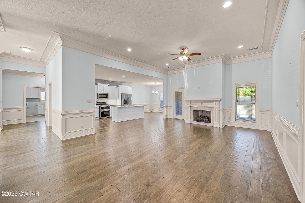One-of-a-kind home in Shiloh Springs! This rare find offers one of the largest single-level floor plans in the neighborhood with over 2,800 heated square feet, all set on a private cove and the largest lot in the community?over half an acre. Inside, you'll find a thoughtfully designed split floor plan featuring no carpet, heavy crown molding, and numerous upgrades throughout. The gourmet kitchen is complete with quartz countertops, stainless steel appliances, a built-in pantry, a working island, and a gas cooktop and double oven, all open to the living room, den, and dining room?perfect for entertaining. The spacious primary suite includes a walk-in closet that connects directly to the oversized laundry room for added convenience. Step outside to enjoy the extended patio with Phantom screens, a fully fenced backyard, and a detached workshop with a roll-up door. This home truly combines comfort, style, and function in a private setting.