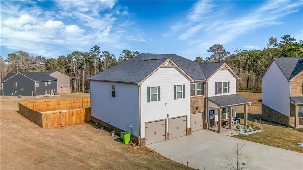 Welcome to this better-than-new, one-year-old luxury cul-de-sac manor where thoughtful upgrades and modern elegance far exceed standard new construction. This 5-Bdrm / 4-Ba, 3-car garage estate is designed for both elevated living and effortless comfort-every detail already completed so you can simply move in and enjoy. From the moment you enter, you're greeted by a grand elongated foyer and a sophisticated separate dining room. The expansive family room with fireplace flows seamlessly into a beautifully designed kitchen, creating the perfect space for entertaining and everyday living. The kitchen is a showstopper, featuring granite countertops, designer backsplash, stainless steel appliances (including a double oven & separate cooktop stove), bar seating, an upgraded sink with a rare glass washer station, and a custom California Closets pantry system that brings both style and function. The main level also offers a private bedroom suite with a full bath, ideal for visitors or multigenerational living. A quarter-turn staircase with wrought iron railing leads to your upstairs private retreat. Enjoy an oversized loft perfect for a media room, lounge, or second living space. The luxurious owner's suite is truly impressive-large enough for a full sitting area-paired with a spa-inspired bathroom featuring a smart toilet, separate soaking tub, glass-enclosed shower, upgraded vanities with vessel sinks, and illuminated anti-fog smart mirrors. The expansive double-sided California Closets system ensures organization meets elegance. Three additional spacious bedrooms complete the upper level, each offering convenient bathroom access, along with a well-appointed laundry room featuring cabinetry and additional storage. Step outside into your fenced yard onto your extended concrete patio terrace, perfect for entertaining, plus a separate backyard slab ready for a shed or additional outdoor living space. The land lot exceeds beyond the wooden fence, giving ample space for open-air hosting. The home also includes a water purification system, smart home features, and a 3-car garage equipped with an EV charger. This home truly delivers what new construction cannot-premium upgrades, completed outdoor spaces, and move-in-ready convenience without the wait. Owner Upgrades that the builder does not provide: Fenced Yard, California Closet Systems, Oversized concrete patio and slab, Water purification system, garbage disposal & custom shower doors. Schedule your private showing today and step into a home that's already designed to exceed expectations. Your next chapter starts here.