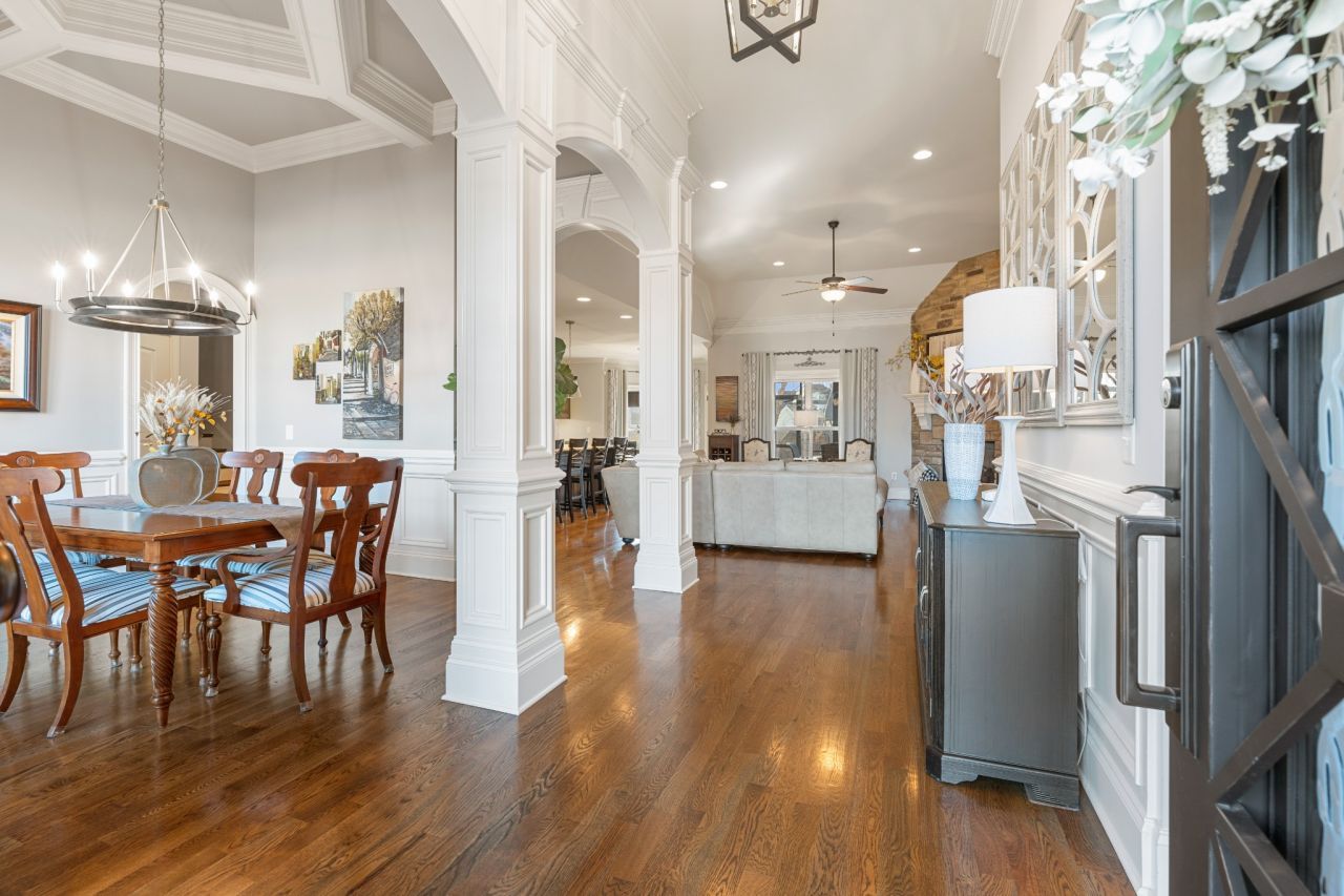This one-owner expanded Chelsea plan built by Eastland Construction in 2018, is located on a cul-de-sac in Blackberry Trace, a quiet, 64-home community with convenience to popular locations in the Greater Nashville area and zoned for Wilson County schools. With nearly 3,600 sqft and 5 bedrooms (or 4 bedrooms + an Office), including 4 bedrooms on the main level and a private guest suite upstairs, this home provides maximum flexibility to accommodate working from home and growing or multi-generational families. Features include custom iron entry double doors; an open concept; 3/4 oak hardwoods; tile in all wet areas; tulip poplar millwork, including wainscoting, recessed panels, decorative columns, and coffered ceiling in the dining room; granite counters in the kitchen and primary suite; new backsplash in kitchen; custom maple cabinetry; custom closet built-ins; custom shelving in garage; whole-home smart wiring, security, and antenna; upgraded light fixtures; a floor-to-ceiling stacked stone gas fireplace; a 680 sqft bonus room; and additional storage, including a large walk-in attic. Outside, you will find a screened porch from which to enjoy sunsets, a stone wood-burning fireplace with seating wall, privacy fence, 5-person hot tub, extensive landscaping with uplighting, sodded fescue, and smart irrigation. Also includes an encapsulated and conditioned crawlspace. The neighborhood is just 20 min or less to Lebanon, Mt. Juliet, and Gallatin, 30 min to BNA, and less than 15 min to grocery stores, restaurants, shopping, and boat ramps for convenient access to Old Hickory Lake. Exterior images/video captured in Fall 2025 in preparation for February listing; interior images/video from 2026. Be sure to check out the included video!