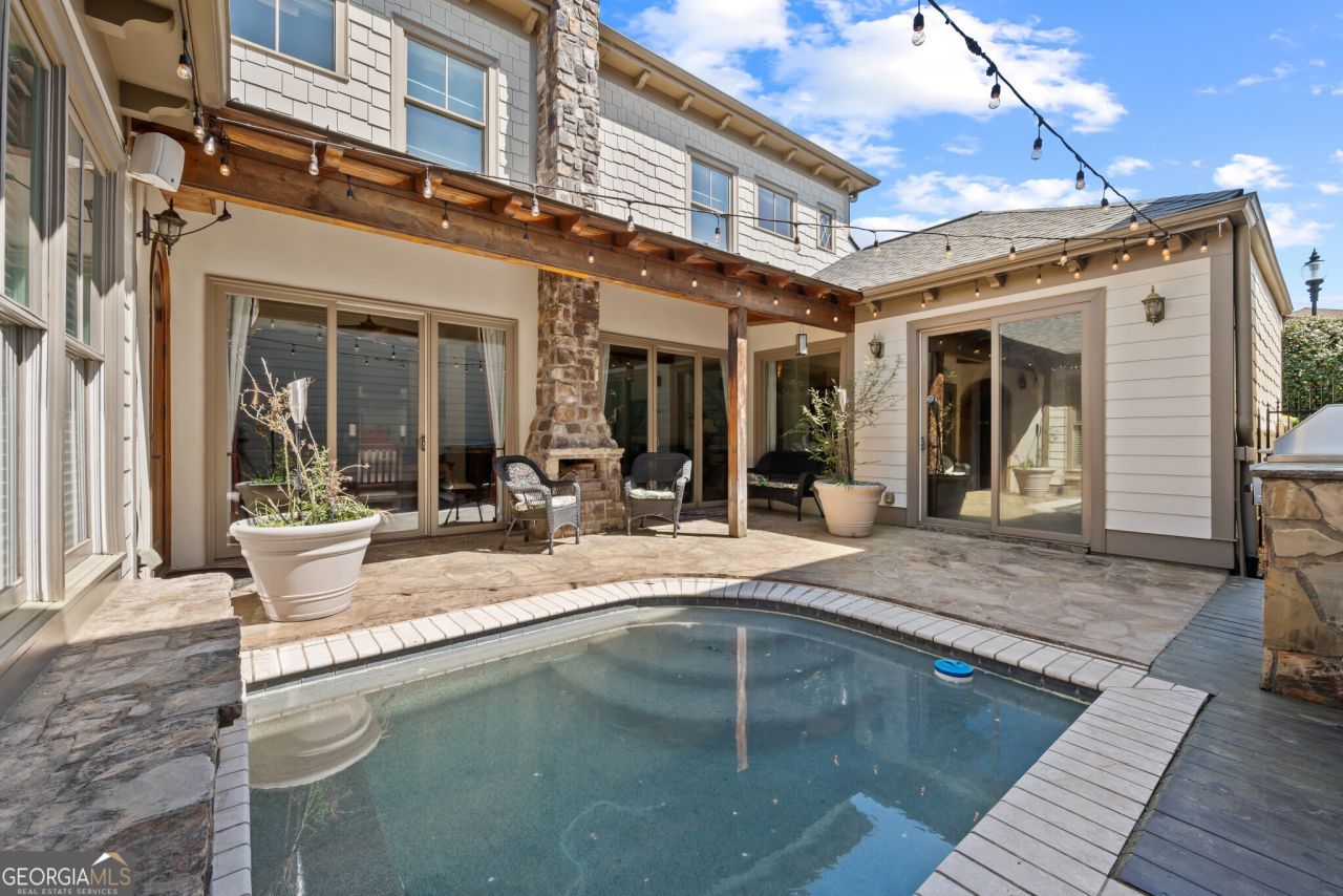 Most homes in this neighborhood follow the same playbook. This one doesn't. Originally built as the model home, this 4 bed / 3 bath courtyard-style home sits on a private corner lot and delivers a level of finish you simply don't see here-starting with a brand new roof and continuing throughout ~2,600 sq ft of thoughtfully upgraded space. Before you even get inside, the outdoor living sets the tone: a private courtyard with a stone patio, fireplace, and a fully built-in gas grill wrapped in stone, plus a heated hot tub / pool combo that feels more boutique retreat than backyard add-on. It's designed-not just added. nside, the difference is immediate. 8-foot radius solid walnut doors, 12-inch baseboards, double crown molding, real wood beams, plank ceilings, stonework, and Venetian-style textured walls throughout. Every detail has weight. Nothing feels builder-grade. The chef's kitchen anchors the home-massive, functional, and visually striking. High-end granite, KitchenAid appliances, gas range, built-in refrigerator, custom cabinetry, and lighting that actually complements the space. It's built for someone who cares about both cooking and design. The main-level primary suite carries the same level of finish with hardwoods, detailed ceilings, a large-format tiled bath, walk-in shower, and an oversized closet with custom all-wood (no wire) oak shelving and cabinetry. Upstairs offers two additional bedrooms and a full bath-clean, well-kept, and move-in ready. Additional features include solid wood built-ins throughout, a spacious laundry, and a Rinnai tankless water heater for efficient, on-demand hot water. All of this just minutes-and realistically walkable-to downtown Woodstock, one of the most active and desirable areas in North Georgia. Community amenities include clubhouse, pool, basketball, pickleball, and more-but the truth is, this home stands on its own. This isn't the one you compare to the others. This is the one the others get compared to.