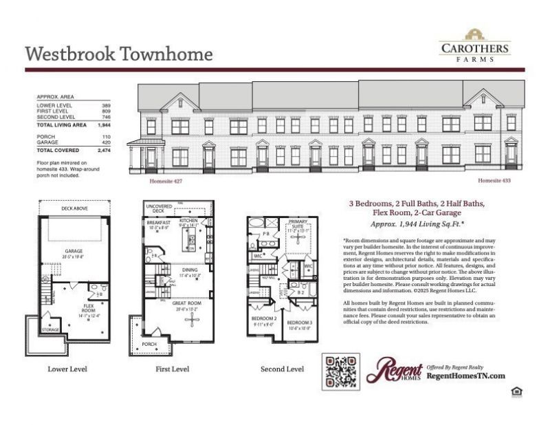 Welcome Home to popular Carothers Farm a Planned community with luxury living in your NEW Westbrook 3 bed room, 2.5 -3 story townhome. Features an open-concept floor plan complete with LVP in Din/Kitchen;crown molding, granite counter tops, stainless steel appliances, tile floors in wet areas. Numerous windows allow for natural light, and the expansive master with 2 walk in closets,tile shower. Storage is ample in your 2 car garage. Covered front and back deck. Walkable neighborhood; Carothers Farms features include a playground, dog park, organic garden, walking trail & event pavilion. Easy access to I-24 & Tangier Outlets, Nashville is only 20 minutes away. Home is perfect for an owner wanting maintenance-free living or an investor looking to unlock the potential of passive income. HOA includes Hi-Speed Internet! Come pick your colors and options