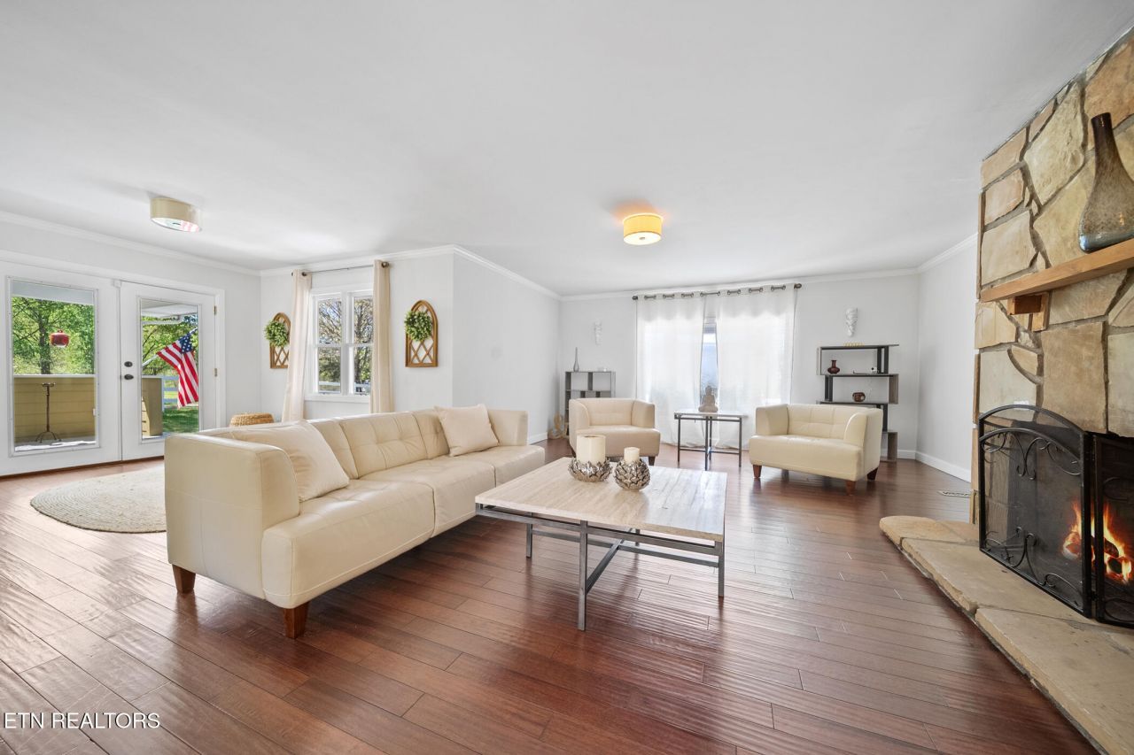 STUNNER! INCOME POTENTIAL STR, SECOND HOME, OR PERMANENT LIVING IS WAITING FOR YOU IN THIS MOUNTAIN MODERN 3BR/3BA WITH BONUS ROOM, THREE CAR GARAGE, DETACHED GUEST HOUSE, SITTING ON 1.54 ACRES MOUNTAIN ESTATE IN SEVIERVILLE, TN! Experience Modern Mountain Living yet make this an income producing short term rental! Nestled in the picturesque Wears Valley area of Sevierville, TN, this exceptional 3-bedroom, 3-bathroom home with bonus room seamlessly blends contemporary design with rustic charm. Set on a nearly level 1.54-acre lot with split rail fencing, the property offers panoramic mountain views and a serene setting perfect for relaxation or entertaining.Two inviting living rooms with hardwood flooring share two sided woodburning fireplace, each adorned with expansive walls of glass that flood the space with natural light and bring the outdoors in. A fully equipped kitchen boasts stainless steel appliances, ample cabinetry, and an adjoining dining area, ideal for hosting family and friends. The luxurious master suite features a private sitting area, balcony, and a spa-like bathroom with a custom-tiled shower enclosed in with glass. All bedrooms are generously sized, complemented by bathrooms featuring custom tile work throughout. A separate detached mother-in-law suite or studio apartment includes its own kitchen, living area, and full bathroom, offering privacy and versatility. Multiple decks with seating areas and a firepit provide the perfect backdrop for enjoying sunsets and the surrounding natural beauty. The property includes an unfinished basement suitable for storage or future expansion, a two-car garage, and a beautifully landscaped yard. This meticulously maintained home is being sold fully furnished, making it an ideal option for a short-term rental investment, vacation retreat, or permanent residence. Enjoy easy access with no steep roads, situated just minutes from Pigeon Forge, Gatlinburg, Dollywood, and the Great Smoky Mountains National Park. Don't miss the opportunity to experience this unique property. Check out the 3D virtual walkthrough and video tour to envision your life in this mountain paradise.