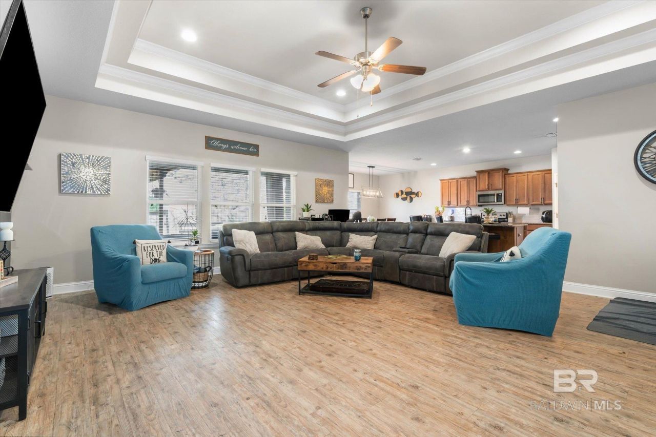 Welcome to this beautiful 4-bedroom, 2.5-bath home located in Spanish Fort in the Churchill subdivision. Built in 2017, this popular Victoria floor plan offers 2,347 sq ft of comfortable open living space. The kitchen is a standout, featuring granite countertops, a stylish tiled backsplash, stainless steel appliances, and a large center island? Perfect for cooking and entertaining. A spacious pantry provides exceptional storage, ensuring nothing is overlooked. This home is thoughtfully upgraded with included security cameras, keypad entry, a Gold Fortified roof (certificate recently renewed for an additional 5 years), new light fixtures, and fresh interior paint. Storm shutters are also included and conveniently stored in the attic. Step outside to enjoy the covered back porch & an added Pergola complete with built-in bench seating? Ideal for relaxing or hosting guests. The primary suite offers a private retreat with granite countertops, dual sinks, a separate soaking tub & shower, with a large walk-in closet. Buyer to verify all information during due diligence.