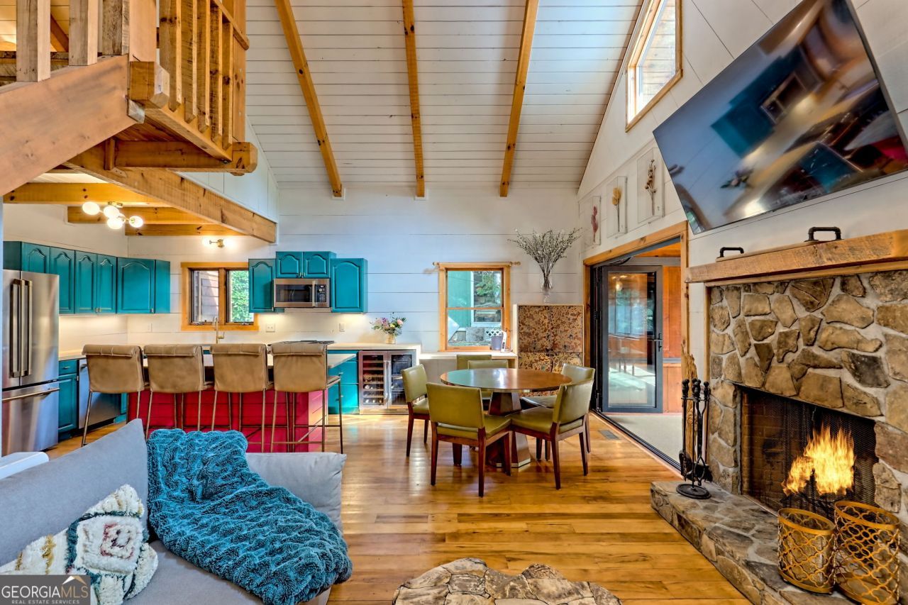 Prepare to fall in love with the most adorable, completely reimagined cabin near Lake Burton! Perfectly positioned within walking distance to Anchorage Marina, the Farmhouse Market, and Lake Burton Cafe, this property blends classic charm with extensive modern renovations for a one-of-a-kind retreat. Step inside and experience a thoughtfully opened floor plan featuring TWO dramatic nano walls that erase boundaries between indoors and outdoors, filling the living space with natural light and fresh mountain air. Both porches have been enclosed with premium 365 Porch Living systems, adding nearly 450 sq ft of flexible year-round living space---ideal for entertaining or relaxing with friends and family. The kitchen has been elevated to a chef's dream with a new leathered quartzite island, KitchenAid Cafe appliances, and an upgraded full-size washer and dryer. The bathroom was completely gut renovated with designer tile, frameless glass, and an Anthropologie vanity. The loft now boasts a new staircase and an added half bath, making it a perfect guest or bonus room. Fresh paint throughout, designer touches, and high-end furnishings add sophistication to this cozy mountain haven. Outdoors, the upgrades continue: the driveway was reconfigured and resurfaced for additional parking, the front yard was fenced and turfed for children and pets, and the wraparound deck with a grilling porch provides the ultimate spot for summer cookouts. Two authentic stone wood-burning fireplaces with gas starters offer cozy ambiance for cool evenings, and a dedicated storage shed keeps your lake gear organized. This is more than a cabin---it's a fully transformed getaway that combines timeless charm with modern convenience. Whether you seek a low-maintenance vacation home, an income-producing rental, or a stylish full-time retreat, 32 Hill Camp Ln delivers. Schedule your private showing today and experience the best of Lake Burton living!