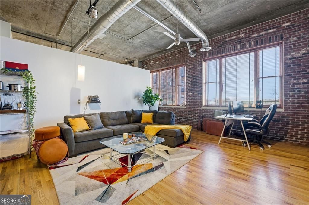 Experience urban sophistication and industrial soul in the heart of Buckhead Village. This sun-drenched, 7th-floor loft offers the ultimate lock-and-leave lifestyle in Atlanta's most walkable zip code. Step into an airy, open-concept retreat featuring 10-foot ceilings, authentic exposed brick, and architectural ductwork that perfectly blends grit with modern glamour. The chef's kitchen shines with granite countertops, dark stainless appliances, and bar seating, while the oversized owner's suite serves as a true sanctuary with a spa-inspired bath featuring a Jacuzzi tub and separate shower. Relax on your private extended balcony and soak in iconic Atlanta skyline views and stunning sunsets. Beyond the front door, your lifestyle gets a massive upgrade. You are mere steps from Whole Foods, The St. Regis, Umi, and Chops. This amenity-rich building simplifies your life with a comprehensive all-inclusive HOA that covers Xfinity cable/internet, water, sewer, and trash. Enjoy 5-star perks including a 24-hour concierge, state-of-the-art fitness center, resort-style pool, rooftop deck, and a private dog park. Rare Buckhead essentials like EV charging stations and ample guest parking are all included. Offered fully move-in ready with all appliances and a gas grill, this is a rare opportunity to own a turnkey gem for under $300k. Welcome home!