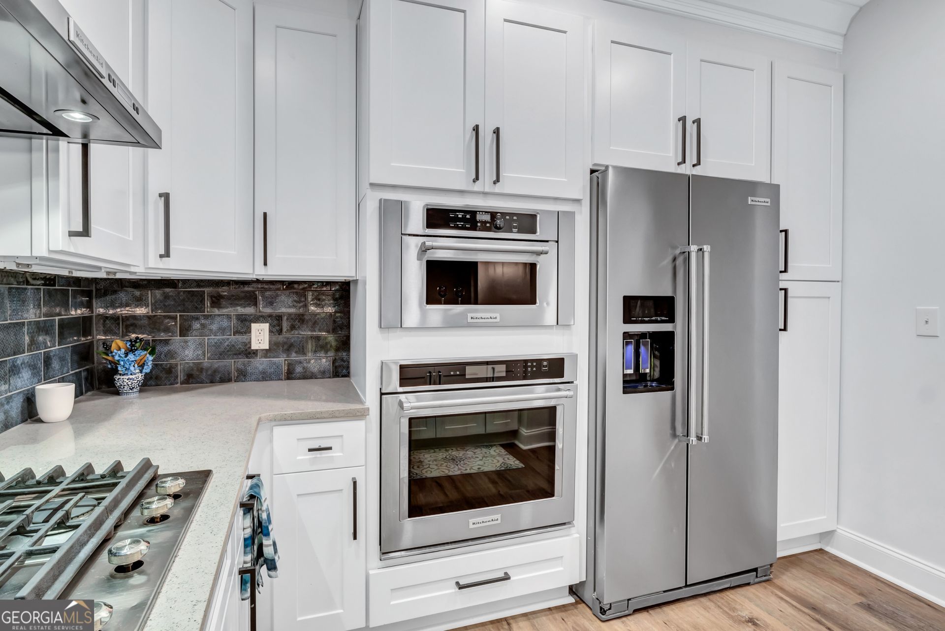 This 4-story mid rise condo building is waiting for you to discover Unit #105. Conveniently located on the first floor next to the large classically styled lobby. Upon entering the unit, you'll first notice the pressence of light with its freshly painted white walls. Second, the modern kitchen will please your senses with its new, bohemian blue backsplash. Each individual tile pattern is slightly different, combining to make a perfect conversation piece. It's loaded with stainless steel Kitchen Aid Appliances and a gas cooktop for those who love to cook. The new tall cabinets are trimmed nice with crown along the tops and below cabinetry lighting to show off those tiles. And the new black hardware gives it a pop of drama to match all the other new fixtures throughout the home. The grey quartz counters add a little sparkle. As you look through the kitchen to the dining area, you'll notice the new, rustic oak LVP flooring. Its continuous coverage also makes the home seem airy and big. You can fit a modern farm table under the new pendant light. As you move to the first set of French doors, they open to a private balcony. And the living room's marble fireplace with gas logs will command your attention. There's plenty of shelves on both sides and two new storage cabinets to hide all your media. The new modern fan will make it easy to cool down. You'll see another new black fan and French doors located in the master bedroom. The black and white elegant master bath is lined with marble from ceiling to floor. The tall vanity with granite counters goes perfectly. But the closet, oh the closet is a walk-in dream. It is cedar lined so none of your clothes will be ruined and includes hanging racks and cabinets. The master bath also has a soaking tub and step in shower with new shower door. You'll think you are at the spa when you run the separate steam settings. And don't forget you have a half bath with a pedestal sink and new mirror. It is a wheelchair accessible bath.The home also comes with a newer LG washer and dryer set. The washer comes with a separate delicates compartment and the dryer has steam cycles. The condo unit has great places to meet other people too like the equipped gym, swimming pool, clubhouse with pool table, and kitchen. With all these nice features, you'll never want to leave the building. But if you do, you are conveniently located to Lenox Park Trail, Phipps Plaza, MARTA, and Lenox Mall. Schedule an appt. today and see this lovely renovated unit yourself.
