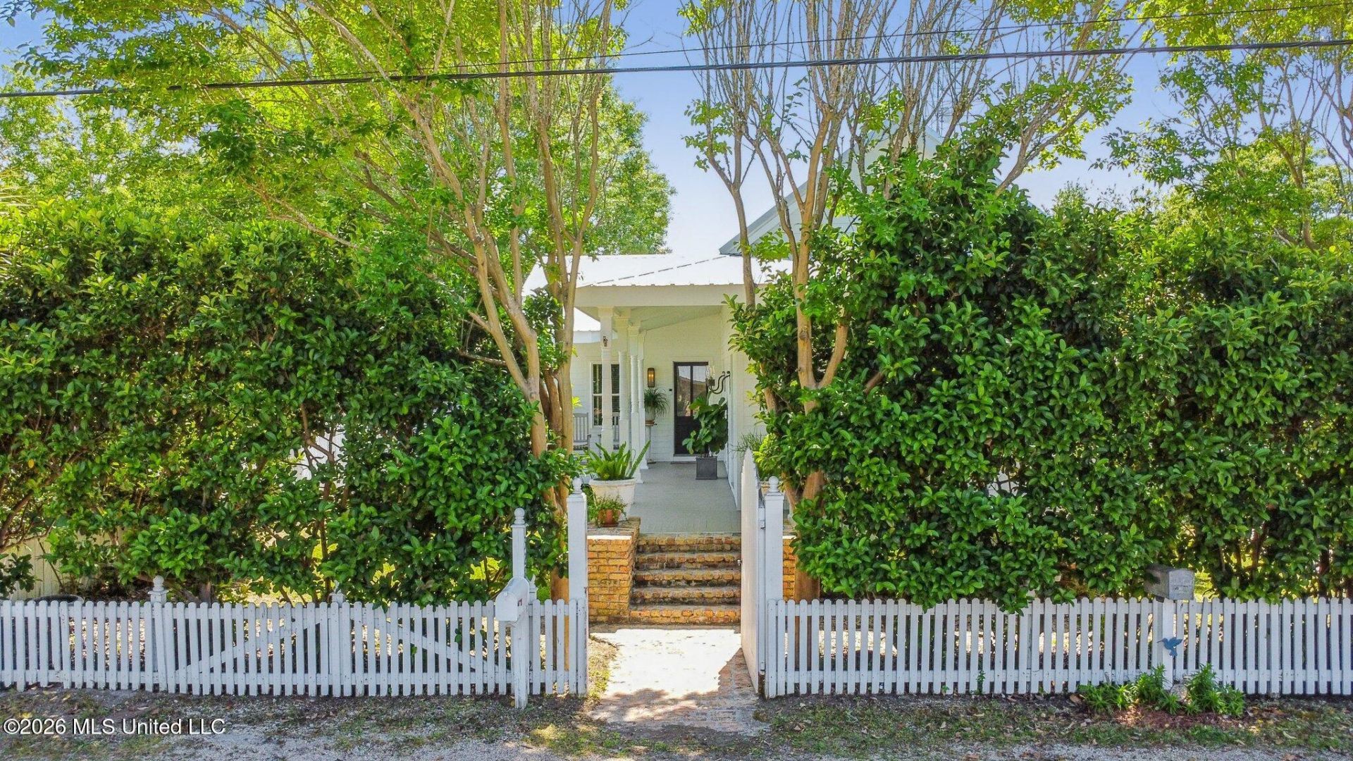 Exceptional historic Old Town Bay Saint Louis cottage tucked behind a wall of mature ligustrum and a classic white picket fence, offering privacy and a true coastal retreat. A gracious wraparound porch sets the tone. Inside, the home features 3 bedrooms and 2 full baths, with 11-foot ceilings, white oak floors throughout, and French doors that open seamlessly to outdoor living spaces.The layout is open and easy, with generous living and dining rooms, renovated kitchen and baths, updated windows, and abundant natural light. The primary suite opens to a screened porch, creating a quiet, private escape. A large laundry room and well-considered storage add to the home's livability.Thoughtful upgrades include a metal roof, recently installed central HVAC system, and a tankless water heater. The gated driveway with automatic entry leads to covered parking. Additional features include an outdoor storage room, outdoor shower, irrigation system, and landscape lighting. A charming statue of Mother Mary, set on an artist's original oyster shell pedestal, adds a distinctive and personal touch to the grounds.All just a short walk to the beach, 100 Men Hall, and the best of Old Town dining and shopping. Just one hour from New Orleans, this golf cart-friendly community also offers twice-daily Amtrak service and the home is a quick walk to the train depot.A perfect full-time residence or weekend retreat, this polished, move-in ready coastal cottage is ideally situated in one of the Gulf Coast's most desirable neighborhoods.