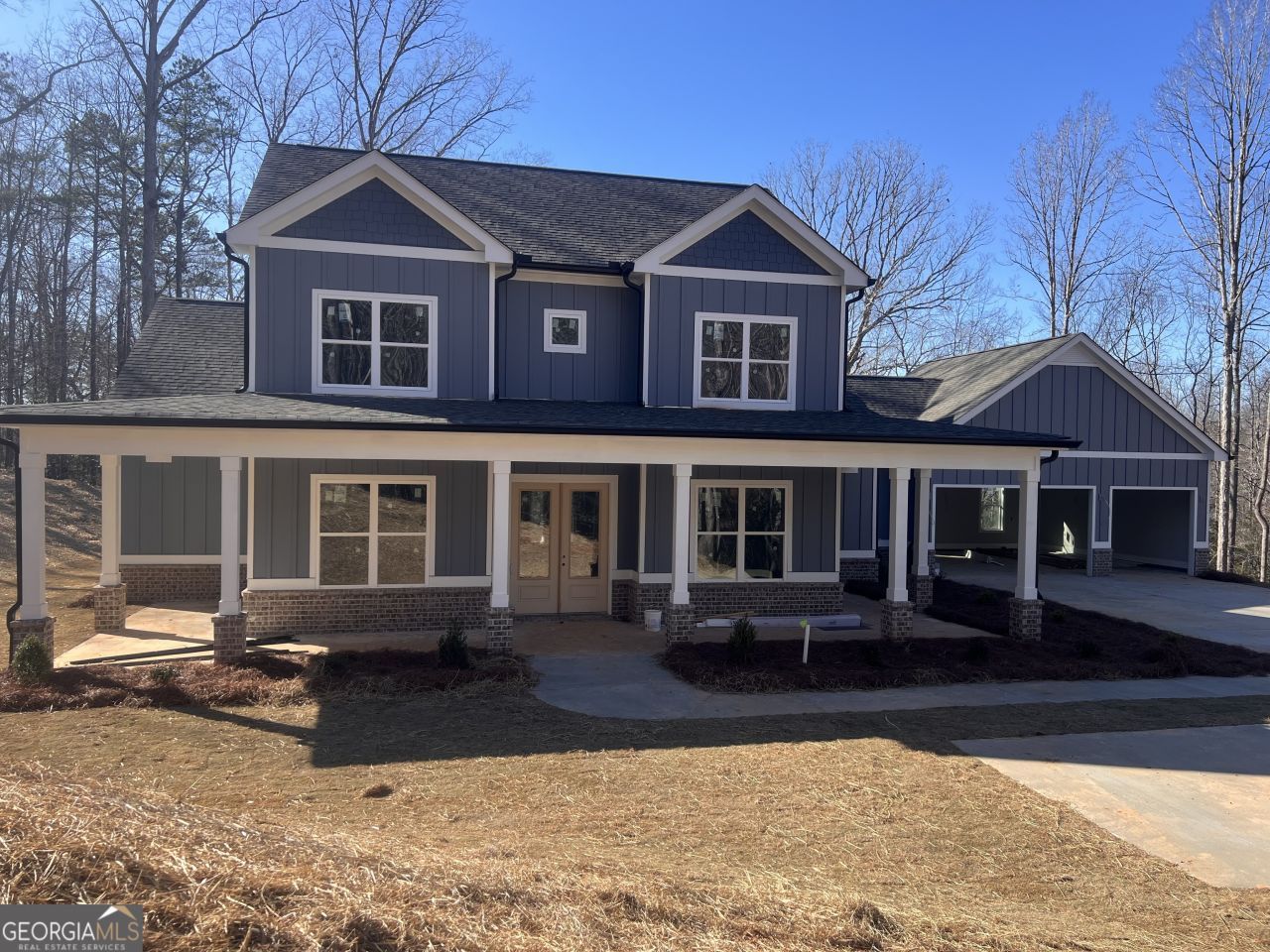 UNDER CONSTRUCTION! Nestled on nearly five wooded acres, this stunning home offers privacy, space, and timeless charm. A sweeping covered porch spans the front and wraps to the side of the residence, inviting you to relax and take in the serene views of towering trees and nature all around. The expansive home itself is thoughtfully designed to provide both luxury and comfort, with generous living areas perfect for gathering and entertaining. Surrounded by mature hardwoods and natural beauty, this property provides the feel of a secluded retreat while offering all the amenities of a grand estate. 4 Bedrooms with the primary suite and guest room on the main, 4 Baths, Finished Bonus Room, Dining Room, Living room with gas log fireplace, covered back patio with wood burning fireplace, & 3 Car Garage. The kitchen is well equipped with all appliances, including a gas oven, refrigerator, dishwasher, and a discreetly placed microwave. A quiet stretch of river is available for all owners of this charming neighborhood, which offers the peaceful simplicity of country living with the convenience of town just down the road. Winding lanes, towering trees, and an easy river side create a setting where nature takes center stage and neighbors wave as they pass by. With private river access for fishing, kayaking, or just enjoying the water's edge, residents can unwind and reconnect with the outdoors. Though it feels a world away, the community is only minutes from local shops, farm stands, and small-town amenities-offering the perfect blend of rural seclusion and everyday convenience. Date of completion is approximately the end of February 2026.