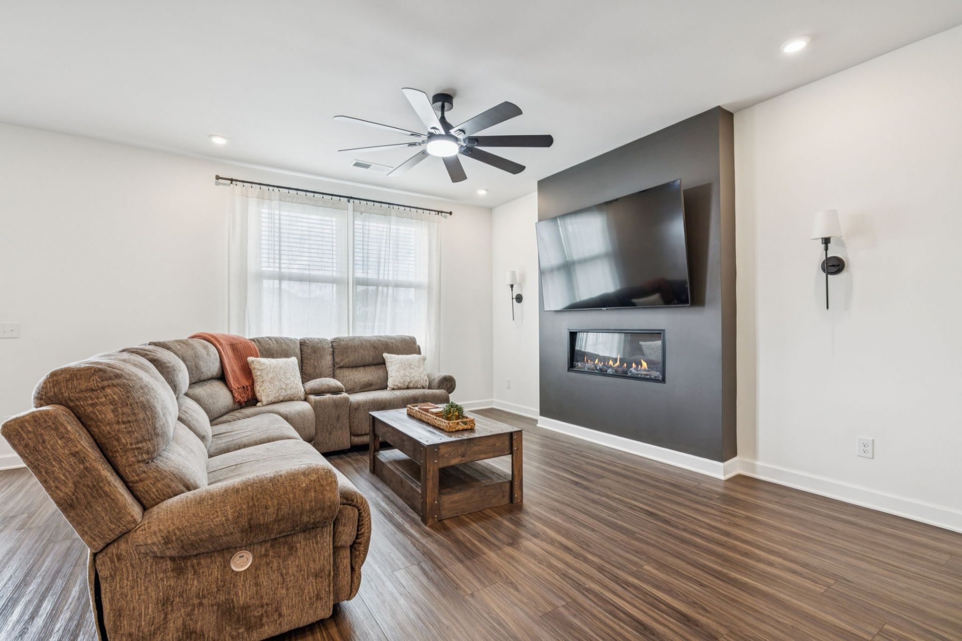 This 2024 home in Carver Creek is ready for you to move in! The main level has an open floor plan with an electric fireplace in the living room and a kitchen with white shaker cabinets, quartz countertops, a walk-in pantry, and a breakfast bar island. The primary suite is located downstairs with a walk-in closet, double vanities, a tiled shower, and a soaking tub. An additional bedroom and full bathroom are also located on the first floor, ideal for guests or multigenerational living. Upstairs, you'll find three bedrooms, a full bathroom, a bonus room, and a storage room currently utilized as an office. Outside features include a fully fenced backyard, a covered patio, and a playground. The sale includes the refrigerator, washer, and dryer. This property is located 10 minutes from shopping and 30 minutes from BNA. **A VA assumable loan at 5.875% is available to eligible buyers. You can also take advantage of our preferred lender incentive available - 1% of the loan amount as a lender credit or a free 1/0 temporary buydown!**