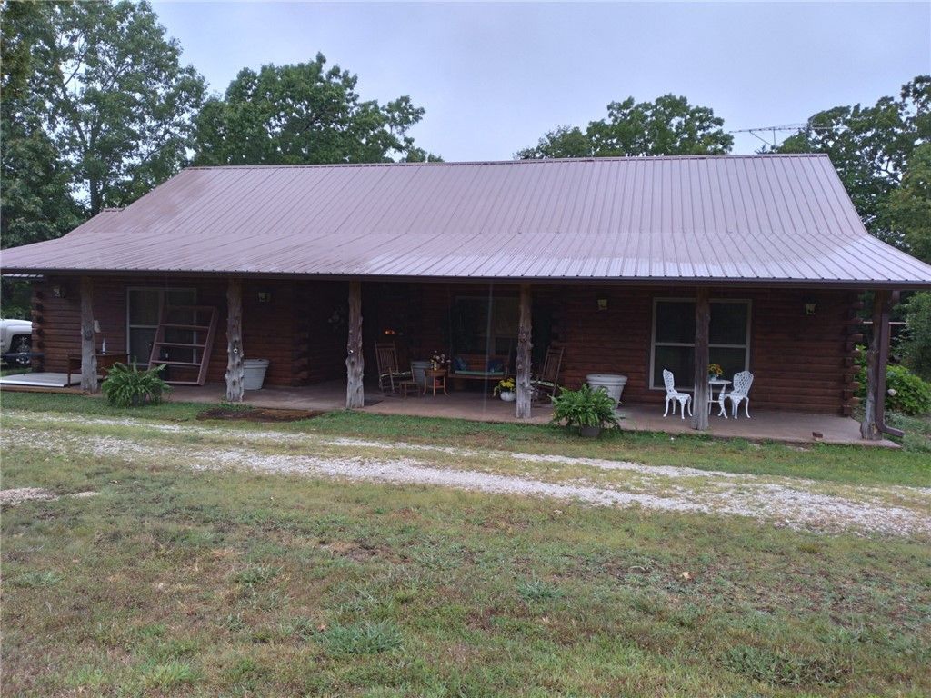 Beautiful custom log home built 2005 features ceramic tile, wood burning stove with creek rock hearth, central HVAC, vaulted living room ceiling, cover front and back porches running entire length of home, 2 car garage and jacuzzi tub in master bathroom. House sits on beautiful development acreage located in the heart of the Ozarks' Boston Mountains. South boundary adjacent to old Dogpatch and Johnny Morris' planned Marble Falls Nature Village in Newton County. Acreage plotted for development with partially completed new graveled interior roads and other old roads throughout. Perfect for development with older roadbeds established along benches. Nice flat pasturelands 10% and sloped timberland 90% with 1/2 mile frontage on Arkansas' Scenic Highway 7. Great hunting! House rental income 16,800/yr. Can also be bought as development acreage, see MLS 1311651.