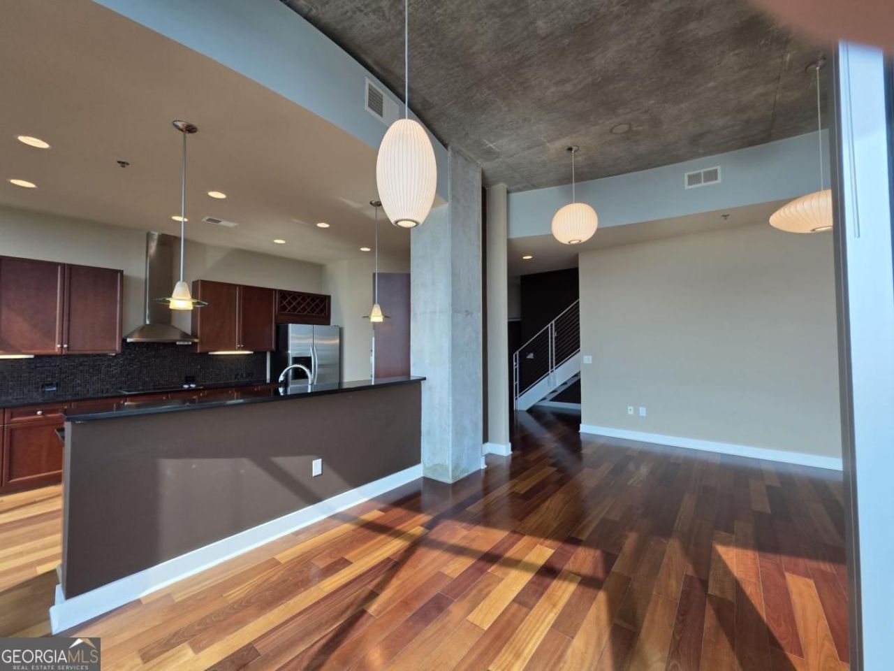 Welcome to this one-of-a-kind two-story penthouse in the heart of Buckhead! It features two bedrooms and two bathrooms with a bonus office/sitting area. The unit comes with a transferable leasing permit, which makes it a great investment opportunity, too. Walking into the main floor, the 12-foot ceiling height makes a big difference immediately with its spaciousness and openness. Floor-to-ceiling windows boast the breathtaking and unobstructed 270 degree view from the 30th floor, showcasing both the city skyline of contemporary Buckhead architecture and the natural beauty of Atlanta's renowned treetop canopy. The cherry on top is the view of Stone Mountain over the horizon where you can see the sunrise every morning. Imagine enjoying breakfast with the golden sunlight filling the property. It warms the soul and melts your heart. The unit faces east and north, which helps to escape the hot afternoon sun during the summer days. The floating staircases lead the way to the master bedroom and its walk-in closet on the second floor with 9 foot ceilings. The entire second floor is a stand-alone structure with no surrounding construction, ensuring peace of mind from neighbor noises guaranteeing the quietest rest. The 300 square foot rooftop balcony offers private sunbathing and the rare sense of owning a piece of the sky with the convenience of city luxury condo living. The space connecting the master bedroom and the rooftop balcony is perfect for a bonus office or sitting area if desired. Beautiful 5 Brazilian cherry hardwood floor throughout the property. Not a singe inch of carpet. The open concept kitchen features granite countertops and upscale cabinetry. The unit has significant storage space in itself, yet still comes with one extra storage unit at the lobby level. The unit includes two best deeded parking spaces, which are close to both the garage gate and the elevators. The parking spaces are separated from the others, so you will never be bothered from neighbors parking too closely. REALM condo services and amenities abound from 24-hour controlled access, security, concierge front desk, and package and mail services. The recently renovated community areas include two well-appointed club houses, a two-story state-of-the-art fitness center, and a rooftop swimming pool, rooftop garden and fire put, and various professional meeting areas. The beautifully landscaped garden in the front of the building centers around waterfall fountains with well maintained flowers and plants. The building also has a dog park for pet lovers. Live a glorious life on the storied Peachtree Road, within walking distance to Buckhead's finest restaurants, coffee shops, shopping centers, grocery stores, hotels, and MARTA allowing easy access to Hartsfield International Airport. The true beauty of this unique property can only be apreciated in person. Schedule a visit to your new home.