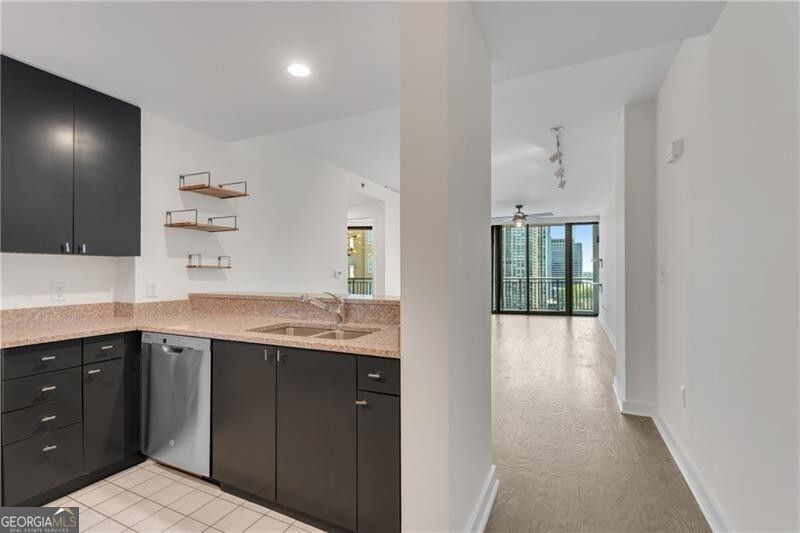 Building is FHA Approved! FRESH Sherwin Williams Alabaster Paint through-out! Open the foyer door to beautiful site-finished hardwood flooring in sandalwood stained color spanning through the entire unit! Sherwin Williams popular Iron Ore Painted 42 cabinets. Stainless steel appliances include gas cooking! True walk-in laundry w/cabinets - No stack units here! Spacious dining/living areas w/wood accent wall leads to the oversized balcony extended behind the bedroom as well. Views of Buckhead Skyline, Kennesaw Mountain and Stone Mountain! Updated lighting package through-out. Tile bath w/iron ore painted cabinets. True 1 bedroom plan. Unit includes a wine locker in the community wine room! Covered parking spot in the secure gated parking garage. Enjoy high rise living from the 17th floor at the Buckhead Grand along with clubhouse, top floor SKY Bar (w/bartending service), swimming pool (with towel service), gym, yoga room, spa, pet walk and outdoor grills! Secured gated parking, 24 hour concierge, doorman/porter service. Excellent location not only 1 block off 400, but directly across the street from Nordstrom Rack, La Parrilla Mexican coming soon , and just a short walk to Bistro Niko, Ru San's, Maggiano's!